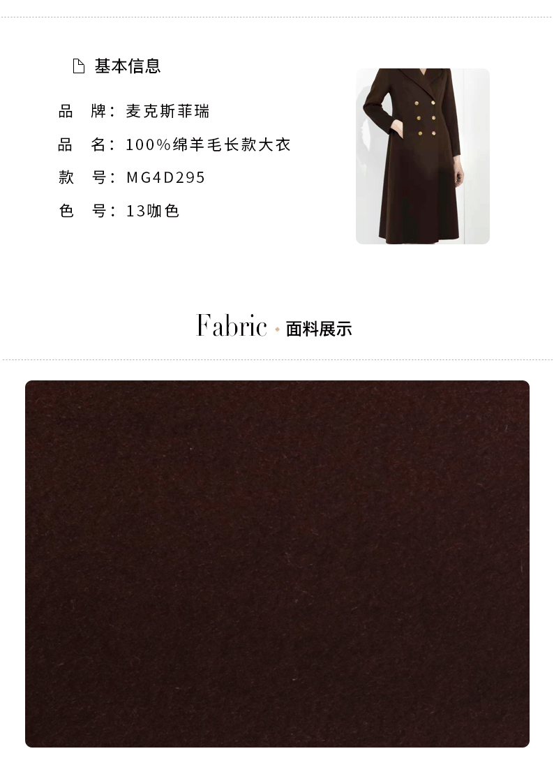 麦克斯菲瑞100%绵羊毛长款大衣mg4d295