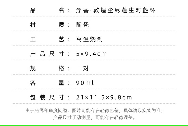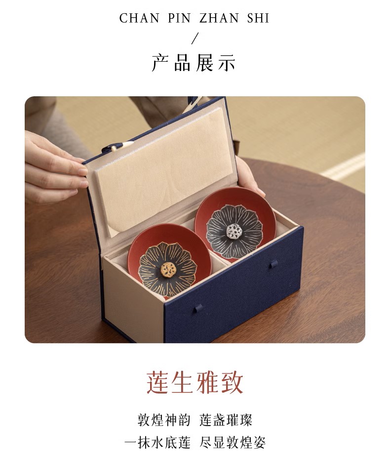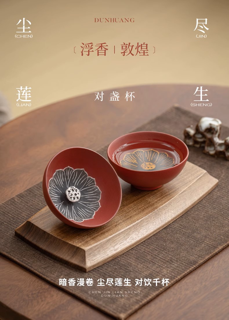敦煌研究院 浮香敦煌尘尽莲生对盏杯 博物馆文创茶杯套装礼物礼品
