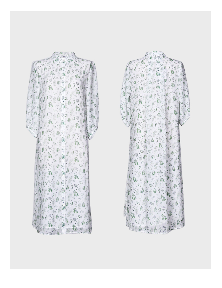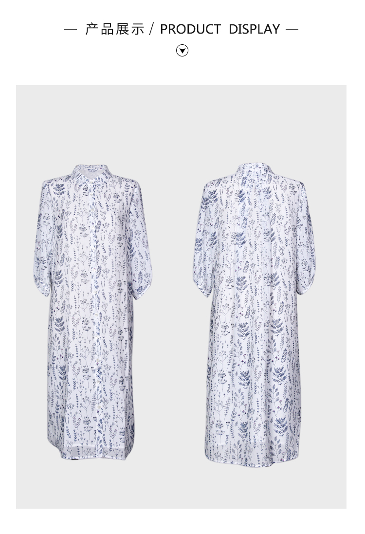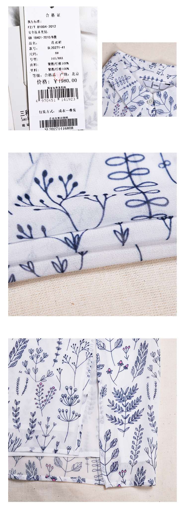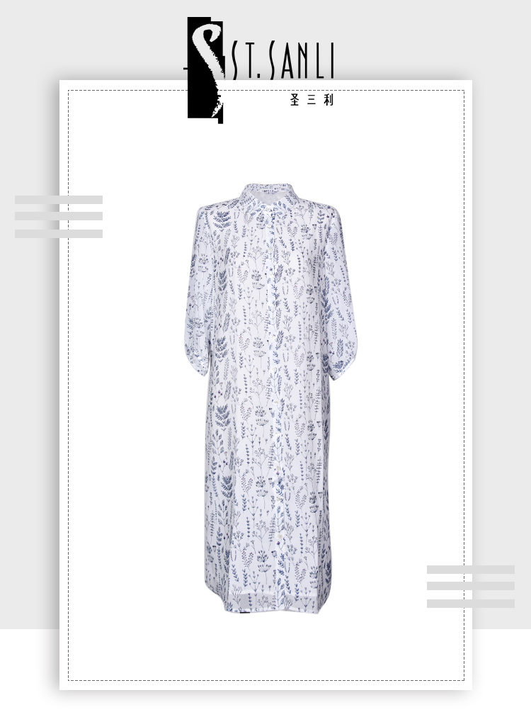 圣三利女装 轻薄中长款泡泡袖雪纺印花衬衫式连衣裙SL2027141