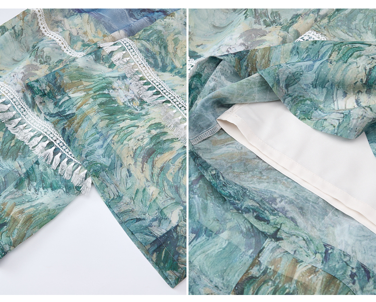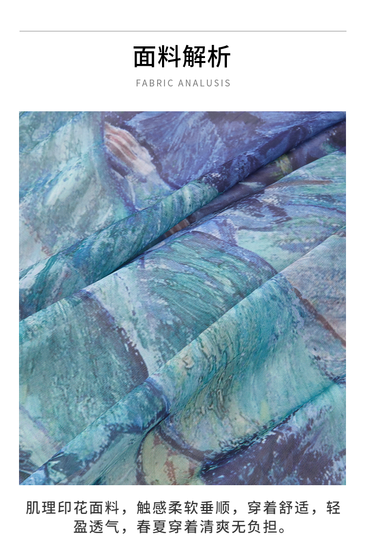 两三事晚春叙景2025春新款印花裙摆拼接立体花朵连衣裙配领带别针S25CLY206