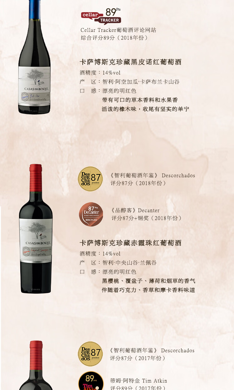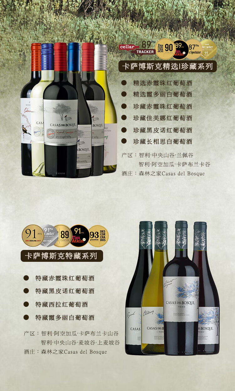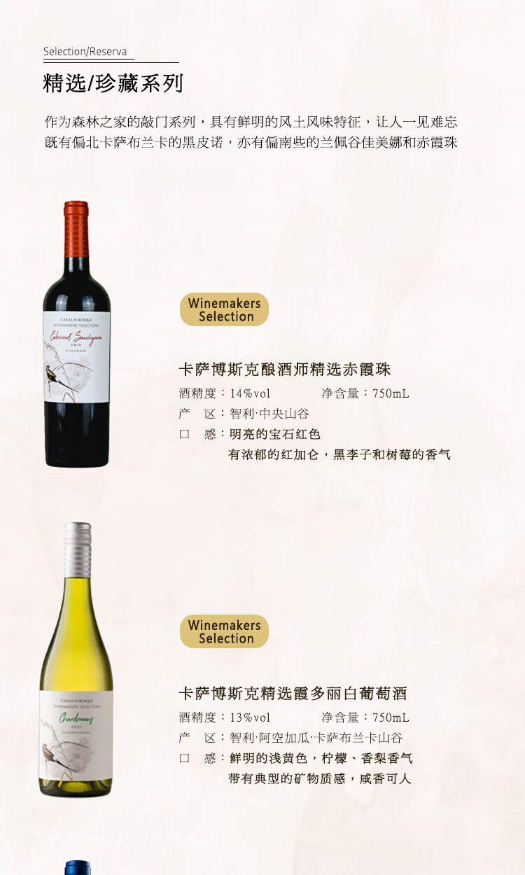 智利top8丨连续6年入选全球50大知名酒庄 智利原瓶进口 卡萨伯斯克酿酒师珍藏赤霞珠干红葡萄酒 14%vol