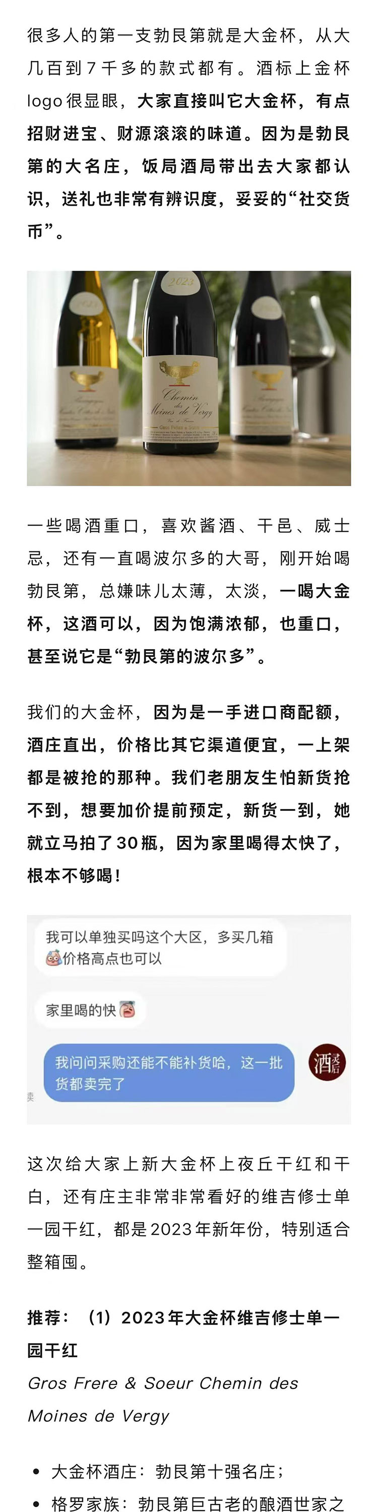 【新年份发售】法国2023年大金杯维吉修士单一园黑皮诺干红
