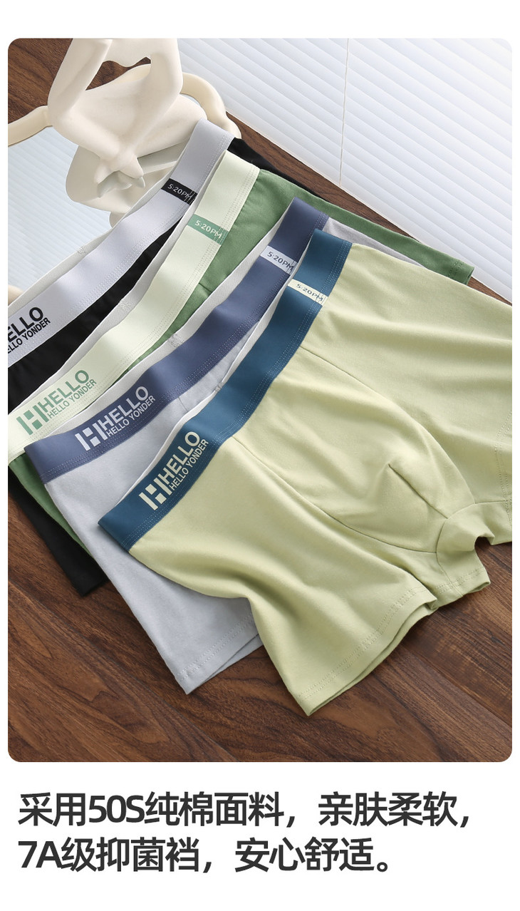 男士内裤男纯棉抗菌平角裤全棉质透气四角裤头男生大码短裤衩