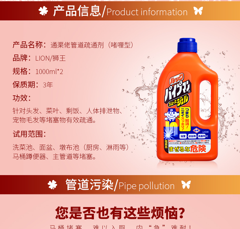 狮王 啫喱管道用清洁剂1L装