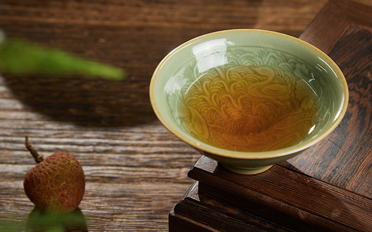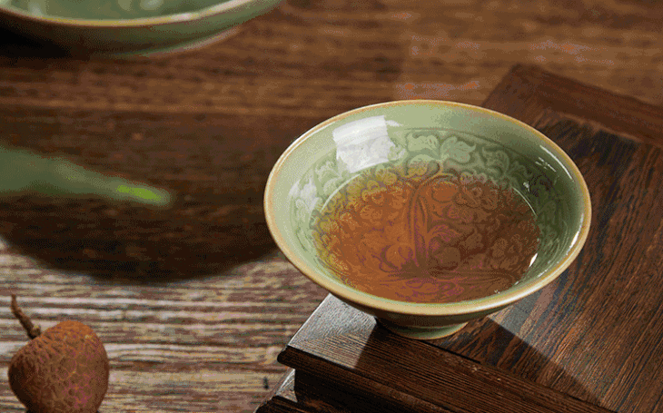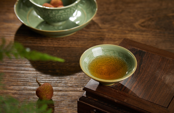 它接受着光,却又像自己在发光。盛上茶汤,山岚流雾,如入仙境。