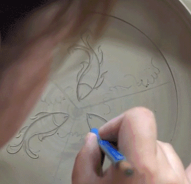双刀刻花绝技是耀州窑刻花工艺一大特色,一抹一旋,一剔一挑,双刀刻剔,弧度千转回落,如流水般潇洒随性。