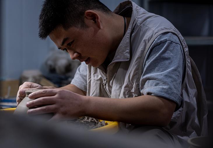 他常年收古瓷、分析胎釉、观摩馆藏,在铜川的山间找胎料、釉料,时常在高温窑口前苦守。