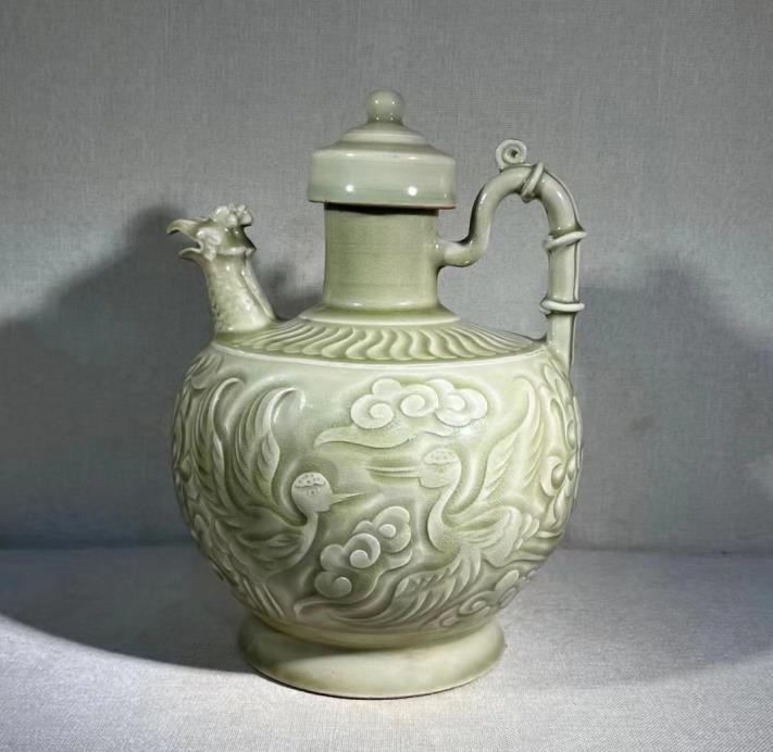 1400年前,长安耀州窑,从唐三彩中取来这抹绝色,制出一把凤鸣执壶。
