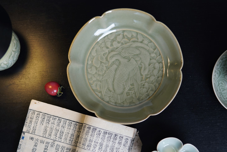 其中胜溪草堂的主理人,她居住在苏州一幢五百年家族传承的老宅中,便很爱耀州窑,她曾花高价购入耀州瓷日用,一抹一抹翠微携流水,与古宅似乎有着不可言说的缘分。