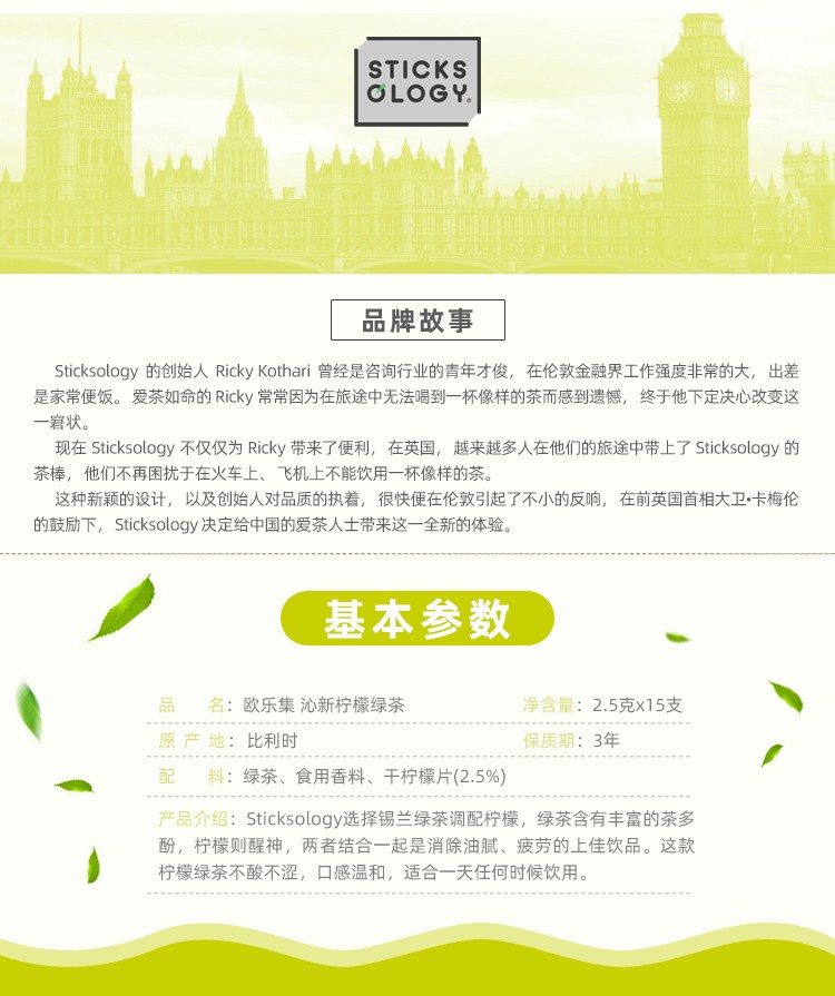 【中欧班列精选2盒】比利时绿茶茶棒 原装进口欧乐集柠檬味绿茶茶棒 37.5g/盒