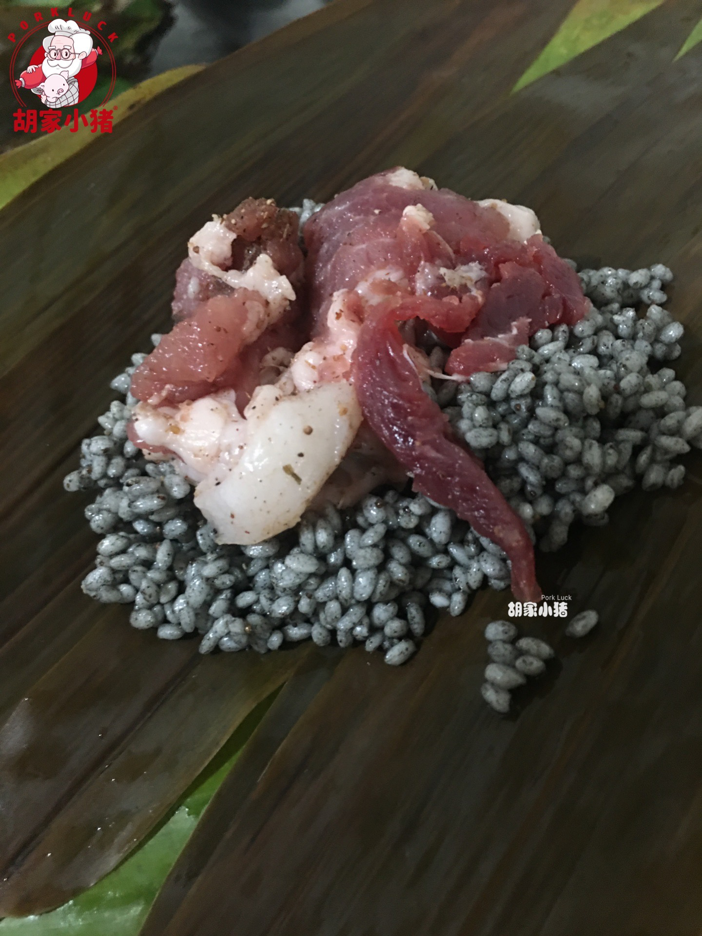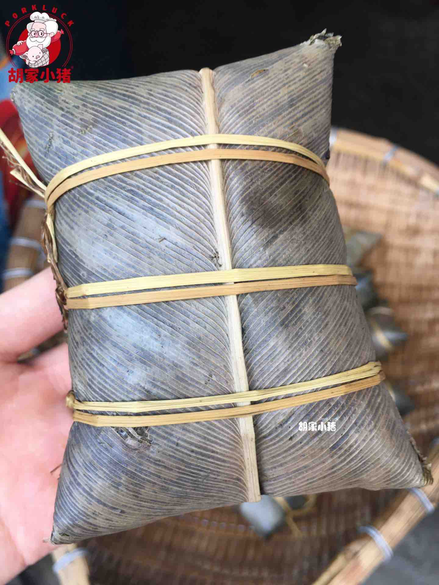 灰肉粽,选用胡家小猪青猪后腿肥瘦去皮后制作