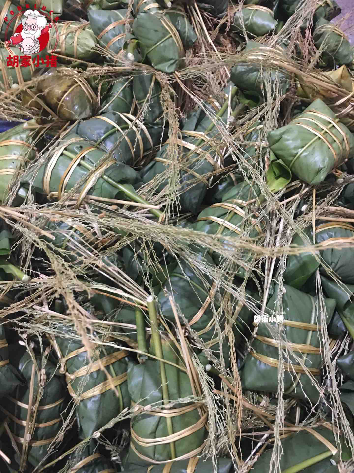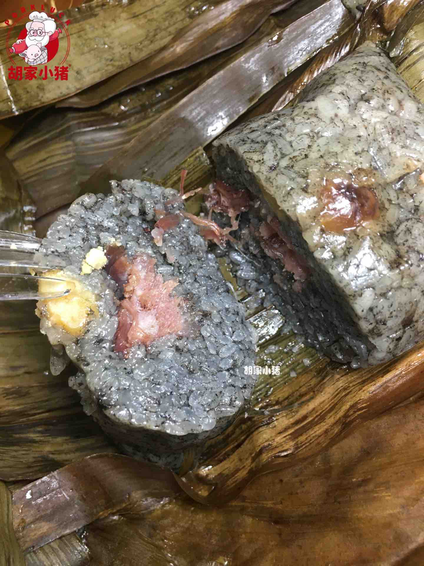 不管是主料还是配料,胡家小猪的选材每一步都很精心,一定是最新鲜最健康的食材,传统人工精心包制。最后下锅煮熟,就可以吃到鲜香四溢的灰粽了。