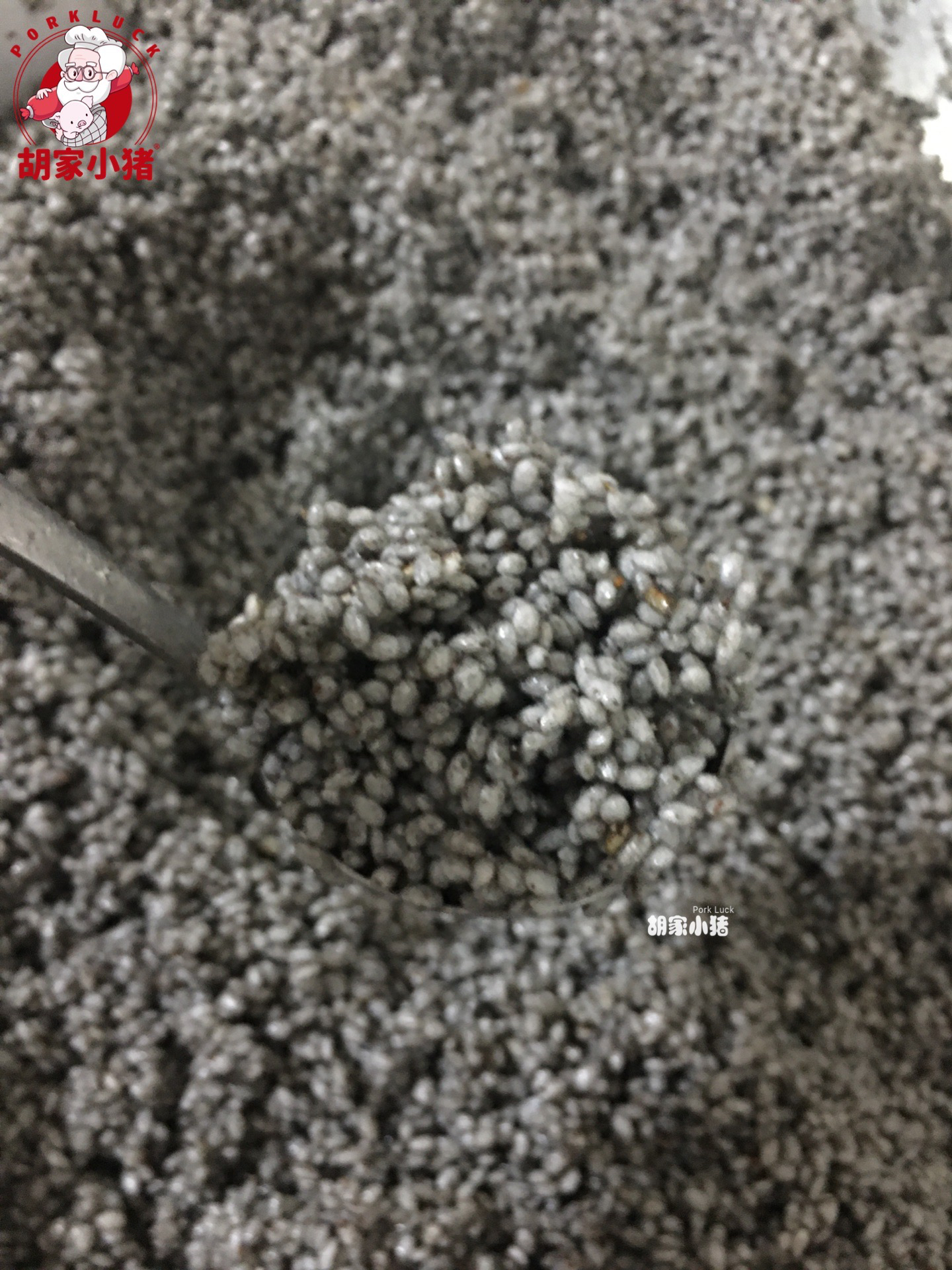 先用草果粉和盐巴调好调料,倒入烧热了猪油的锅中翻炒,炒出香味后倒入草木灰一起翻搅,最后加入糯米一直炒,要让每粒米都裹上猪油和草木灰。