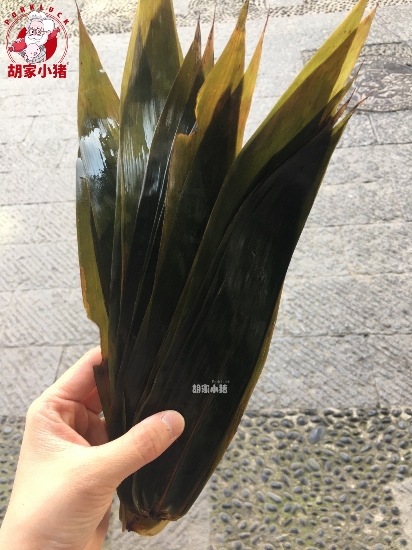 胡家小猪灰粽使用的是贞丰柊叶,柊叶是事先采摘下来烘干储存起来的,烘干后的柊叶不但不会影响味道,包制粽子时也更容易。