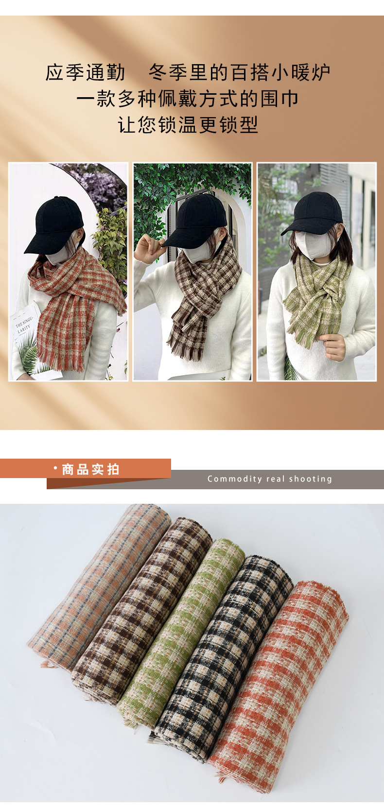 「五款配色!ins风」韩版格子冬季围巾女冬天保暖围脖披肩配饰