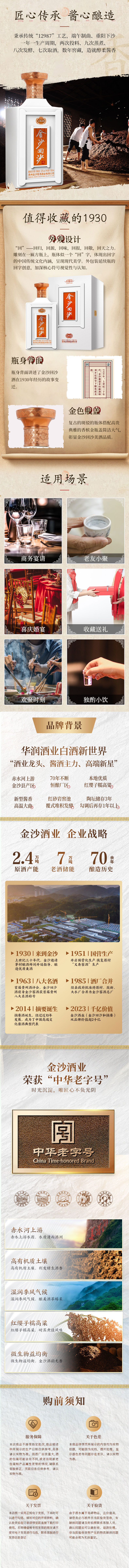 【2021年 纪年1930】 53度金沙回沙酒(1930)新版500ml1*6 500ml/瓶 贵州酱香型白酒
