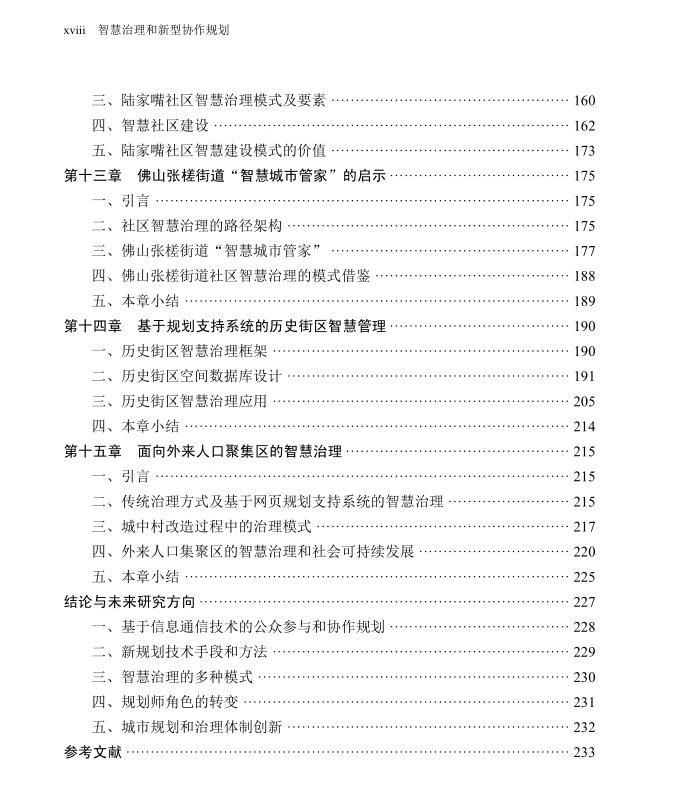 智慧治理是智慧城市的一个主要构成部分,是基于信息通信技术(ICT)的治理模式,能够重构政府、市场和社会三个领域的平衡关系,促进多方参与者的沟通和协作,具有互动式、包容性、协作性以及透明性。然而,不同的体制转变和组织过程会造成不同的智慧治理结果。智慧治理与新型协作规划模式有着密切的联系。传统的协作规划是指三个领域的利益相关者在规划过程中的互动,从而建立共识并共同寻找应对某一规划问题的解决方案,但也存在着少数强势利益相关者可能占主导地位、缺乏公众参与、利益相关者沟通低效等问题。近几年来,新型信息通信技术(如规划支持系统、众包、社交媒体、云平台、在线参与平台等)的发展为协作规划中公众参与和利益相关者互动沟通提供了新的途径,促使了新型协作规划的出现。大量的公众和专家等能够实时快速地参与到规划过程中,与政府互动沟通,但也出现由于数字鸿沟和网络权力中心等造成的新的权力不均衡。此外,如何通过体制创新和结合新技术平台来促进治理和协作活动也是新型协作规划当前所面临的挑战。