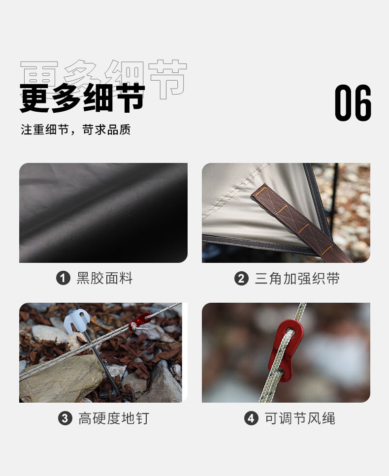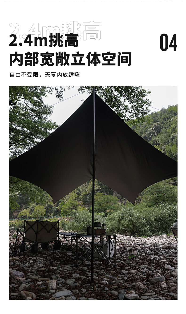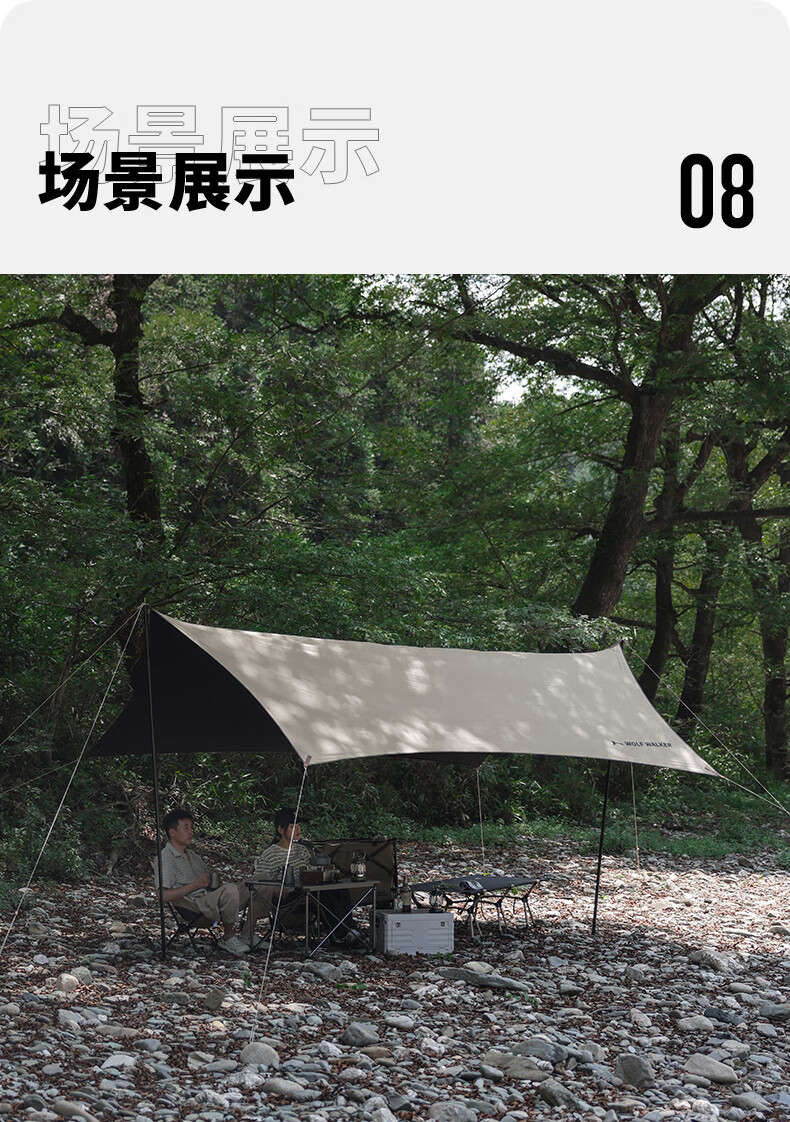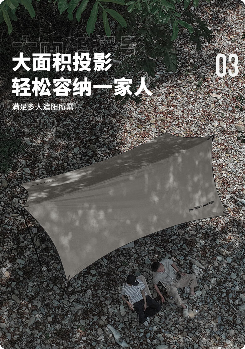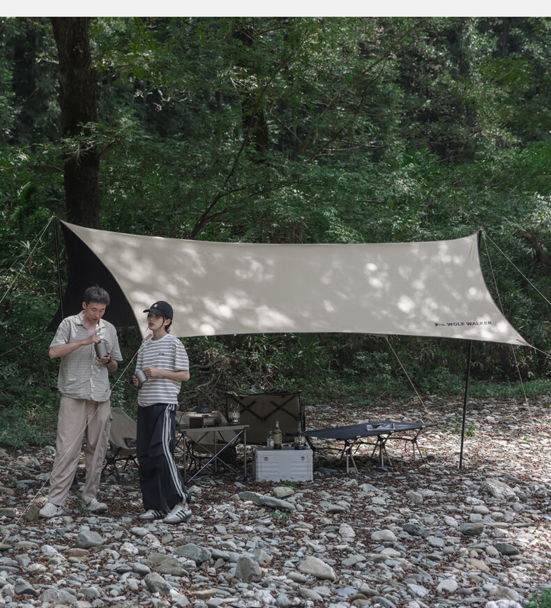 狼行者 户外超大防雨防晒天幕野外露营厚天幕布沙滩帐篷野餐遮阳棚 黑胶天幕 (4*3米)