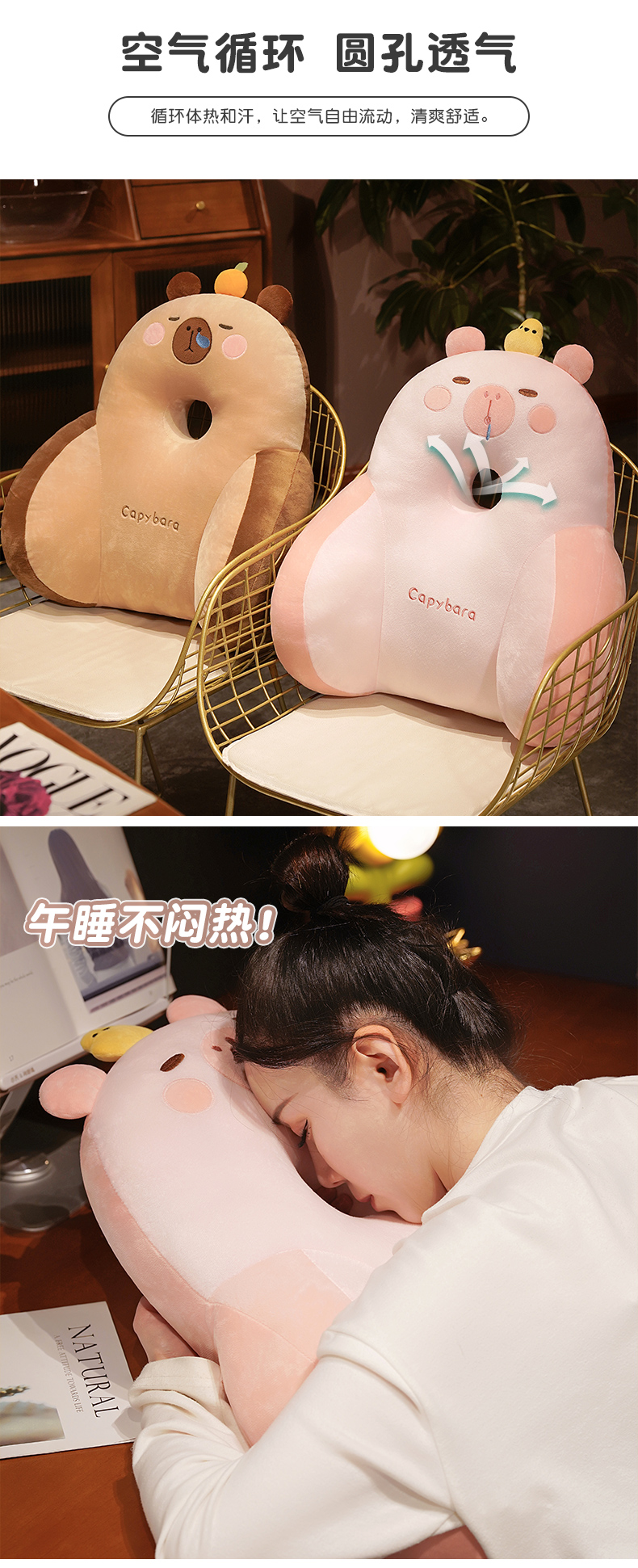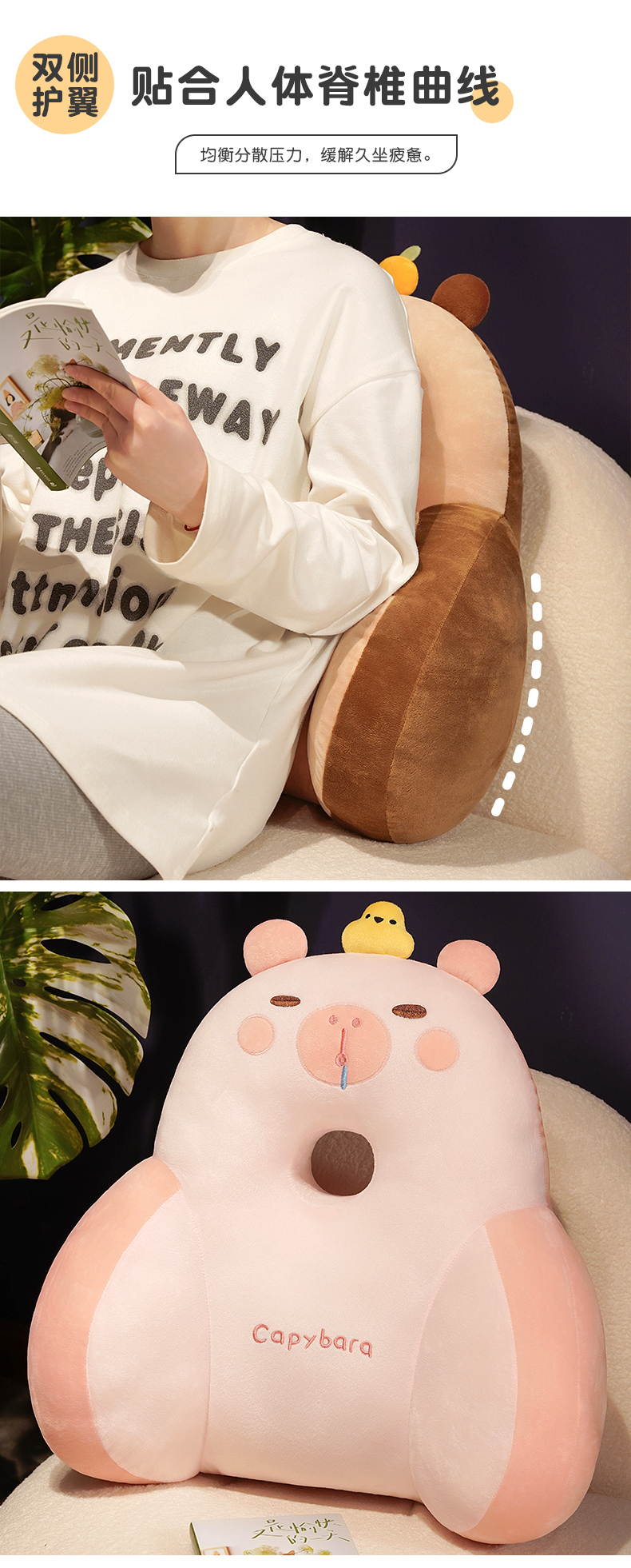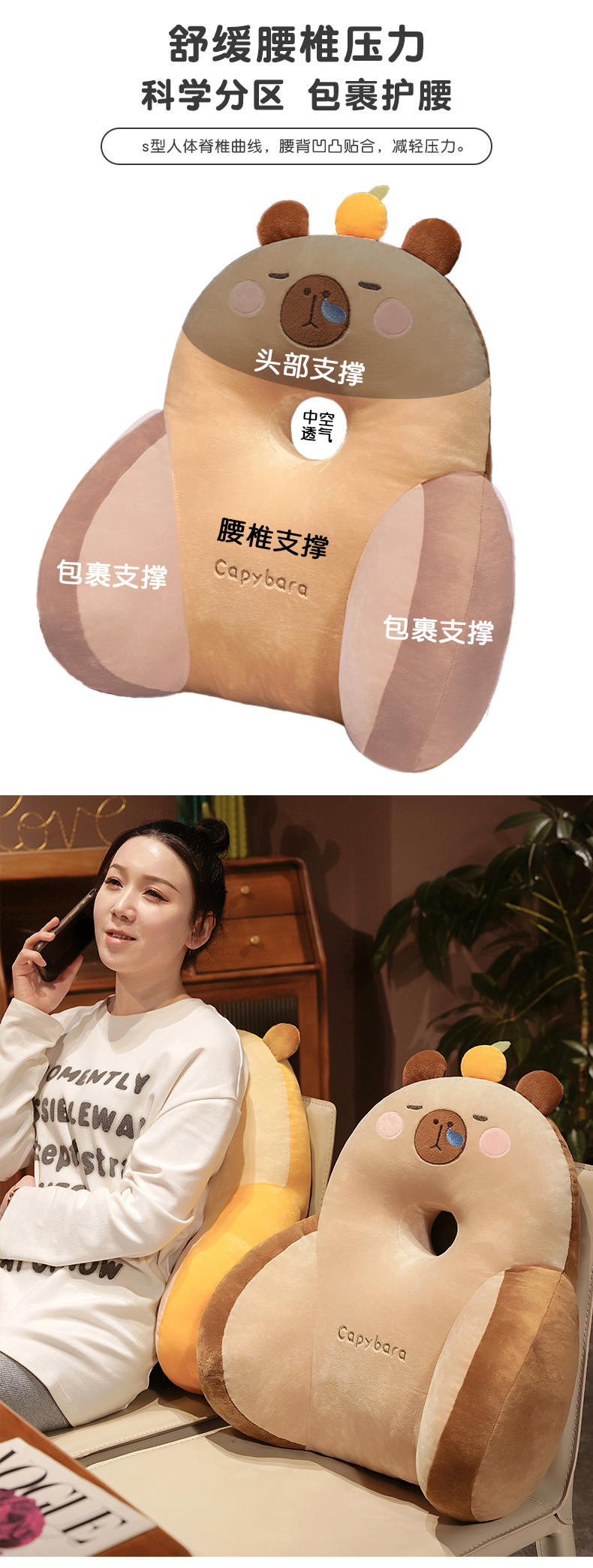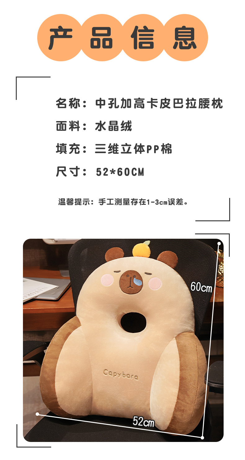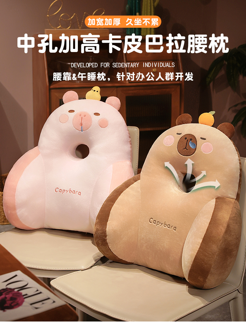 自然醒超柔水晶绒中孔加高卡皮巴拉腰枕办公室腰靠靠垫电脑椅子靠背护腰垫久坐不累QYL