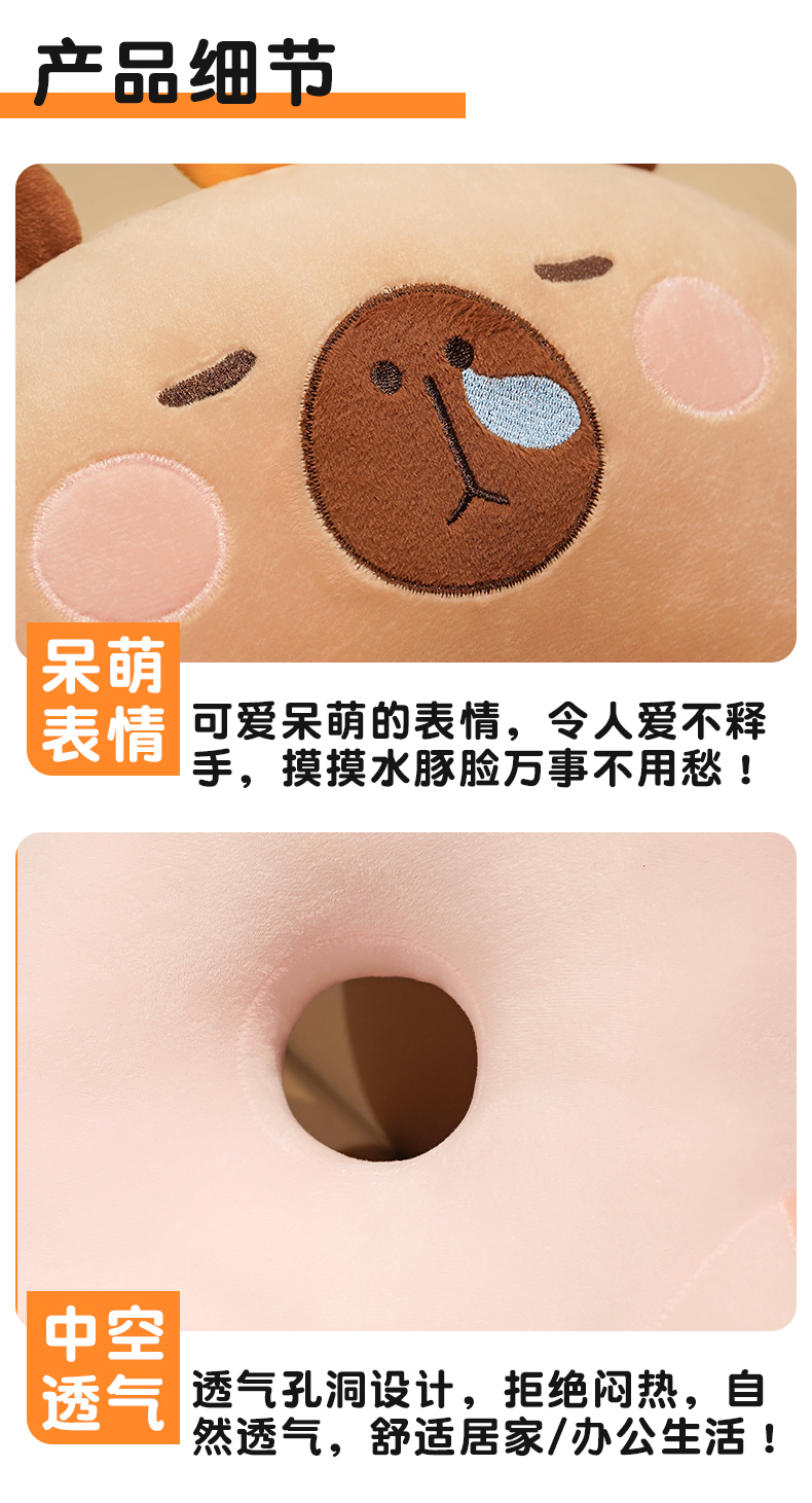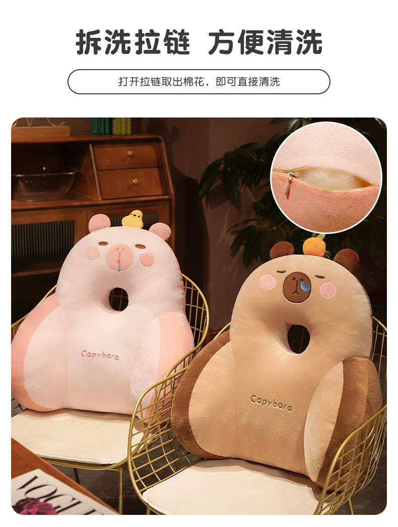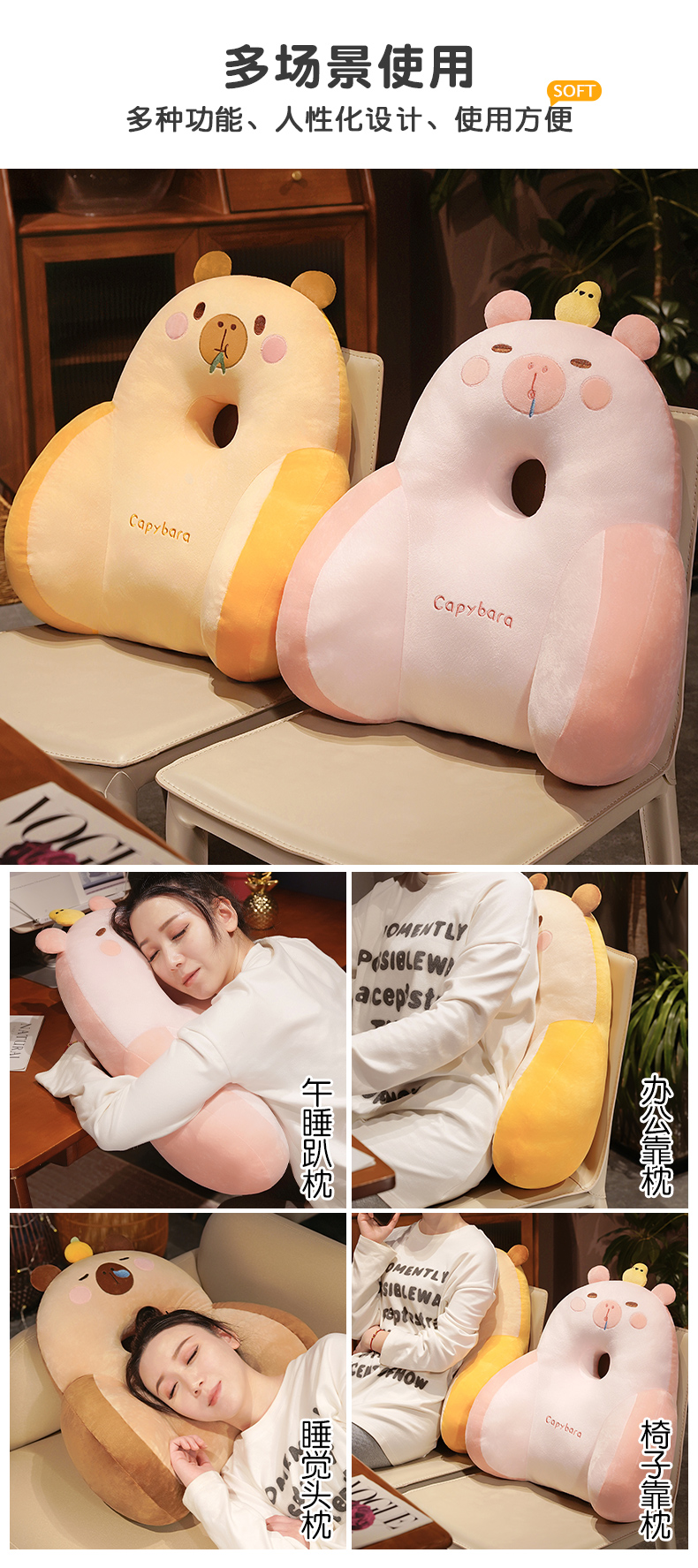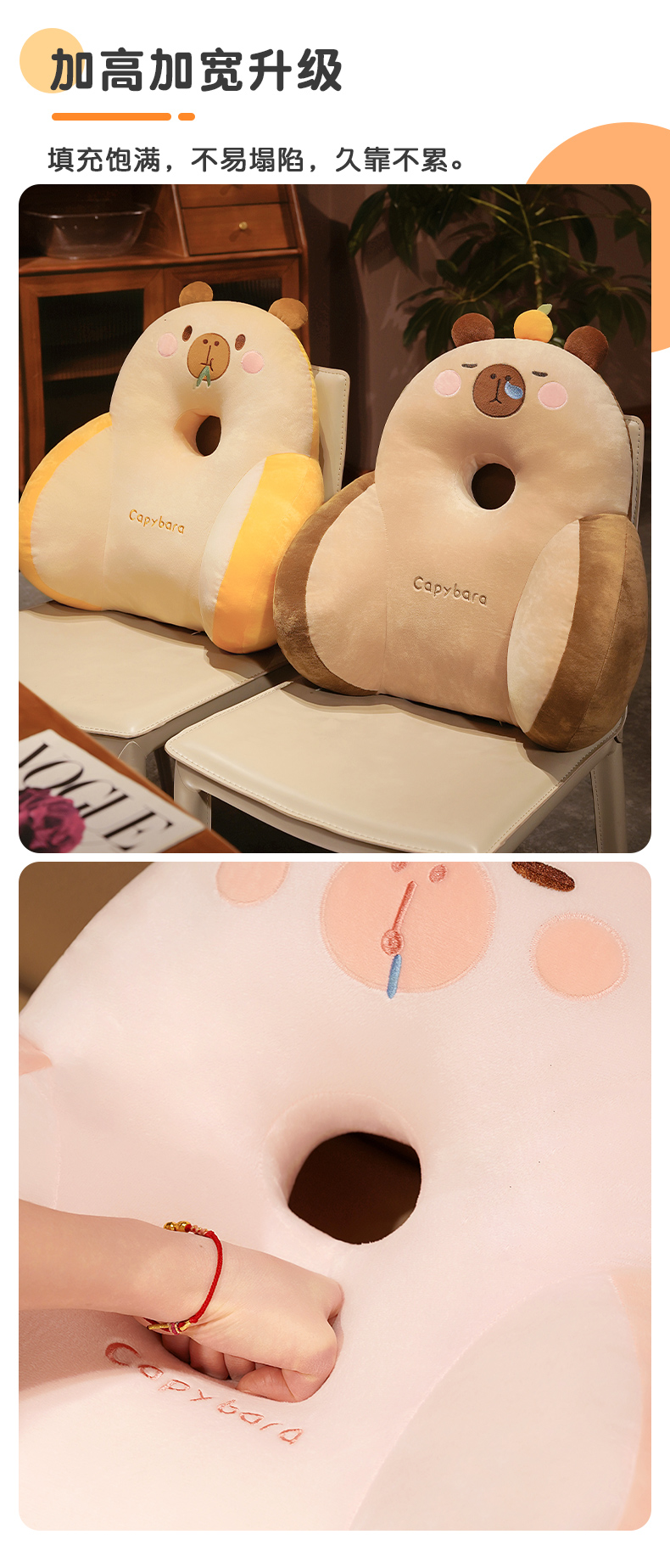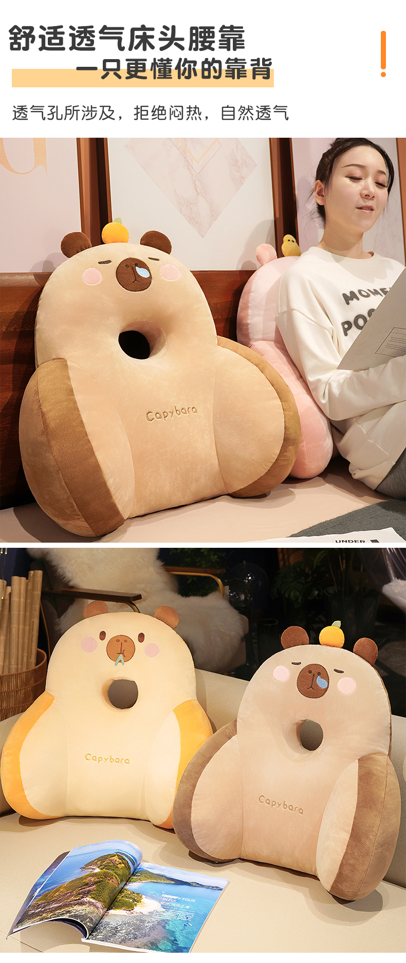 自然醒超柔水晶绒中孔加高卡皮巴拉腰枕办公室腰靠靠垫电脑椅子靠背护腰垫久坐不累QYL