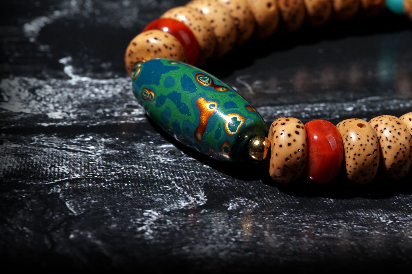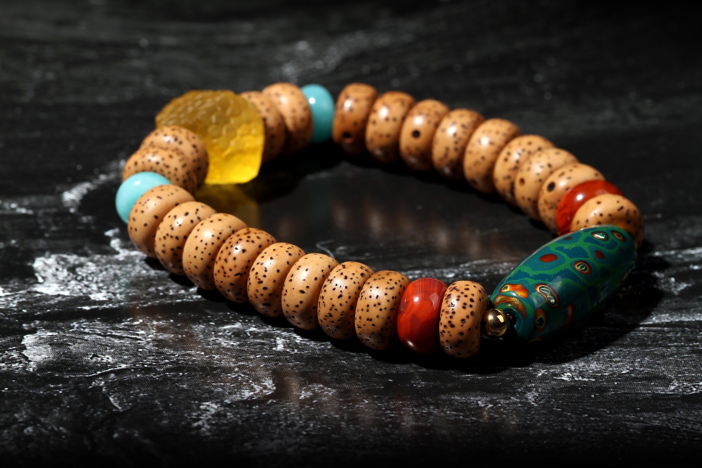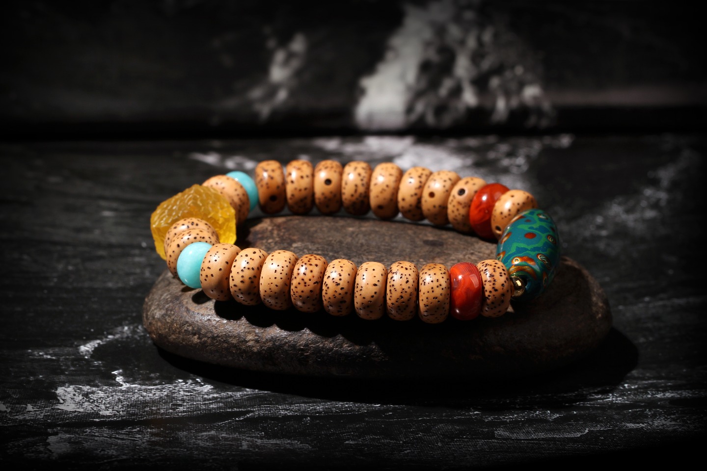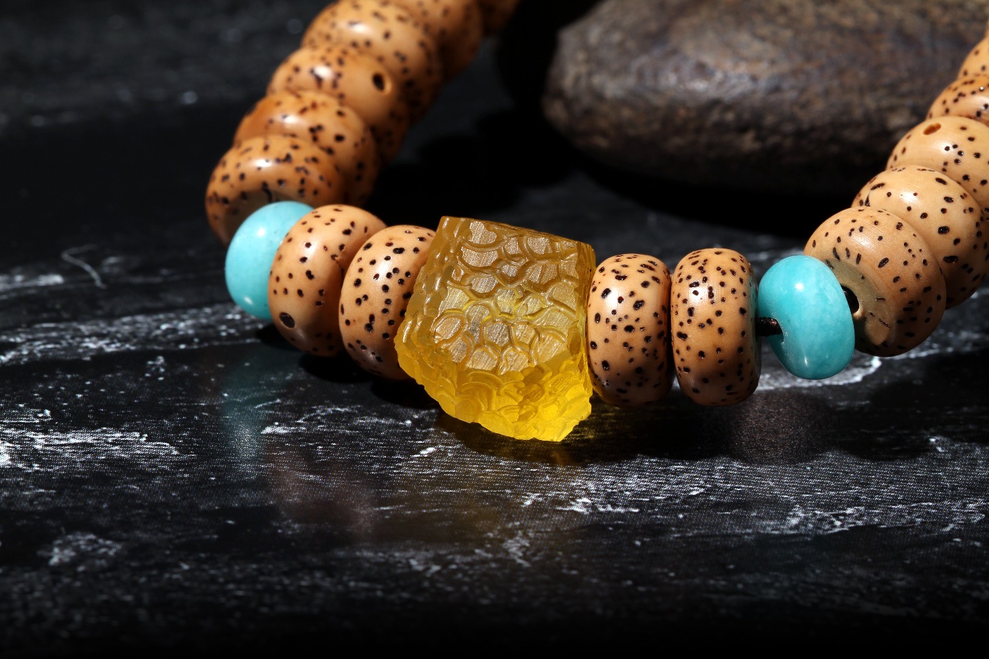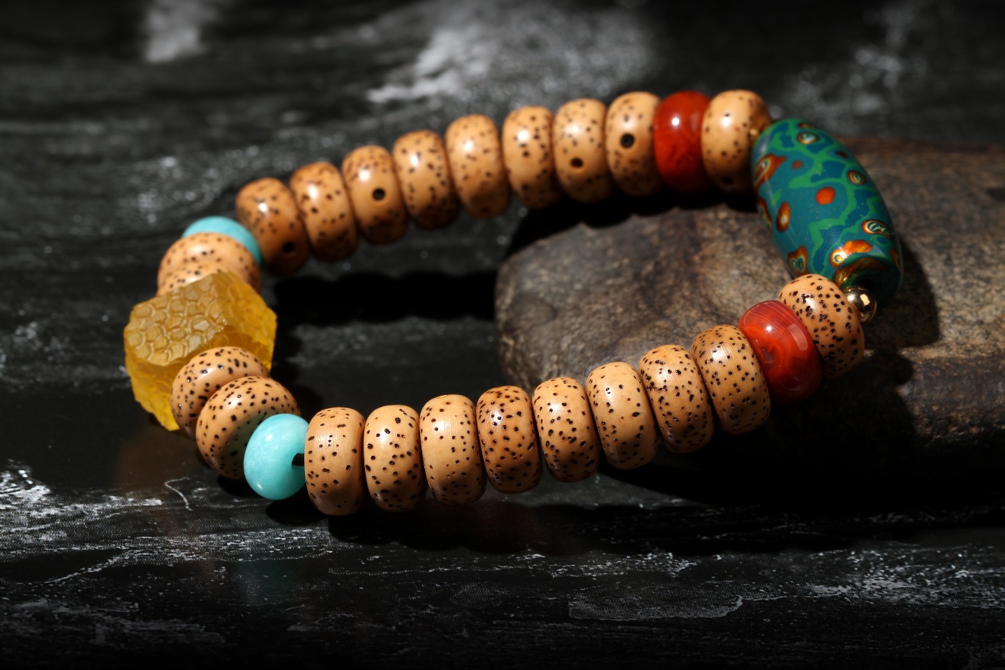 搭配:陈籽星月菩提,搭配大漆天珠,蜜蜡石头珠,南红及天河石隔片