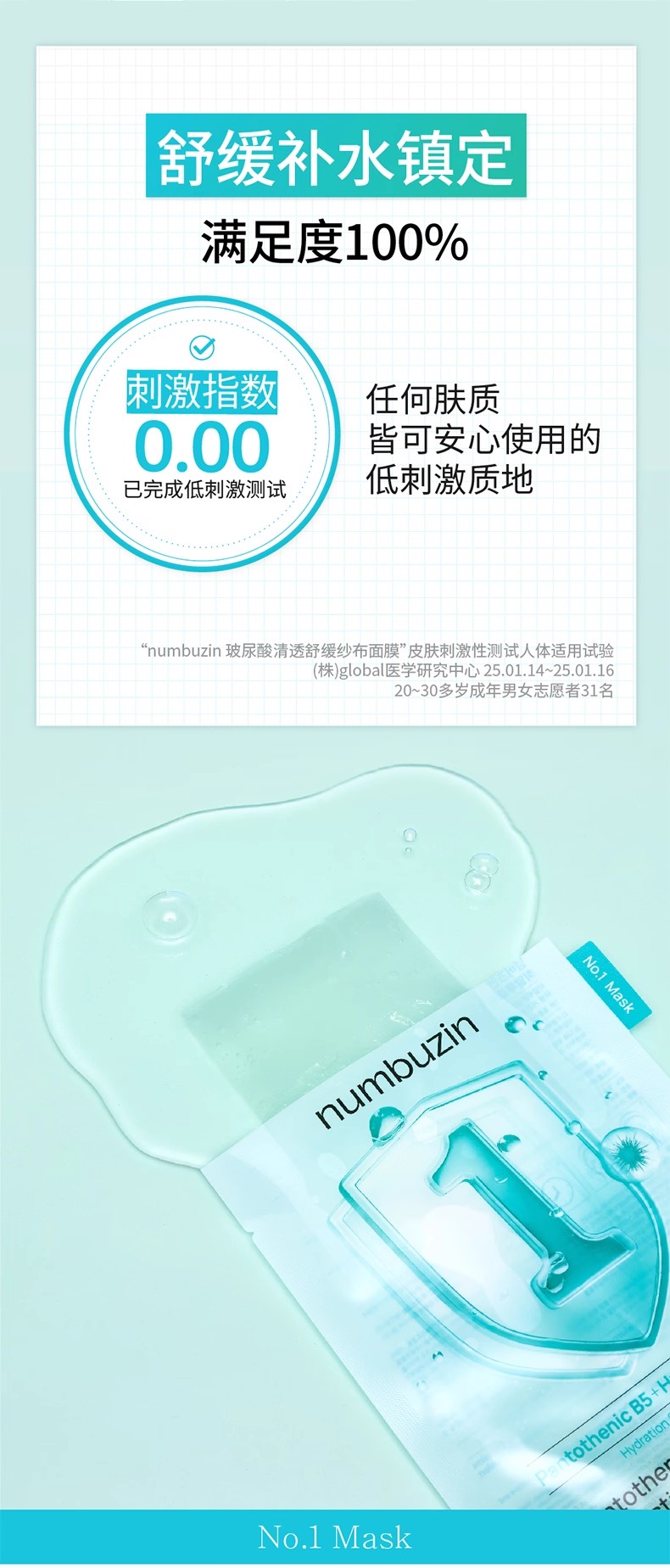 Numbuzin 1号 透明质酸B5舒缓保湿水润面膜5片 数字面膜