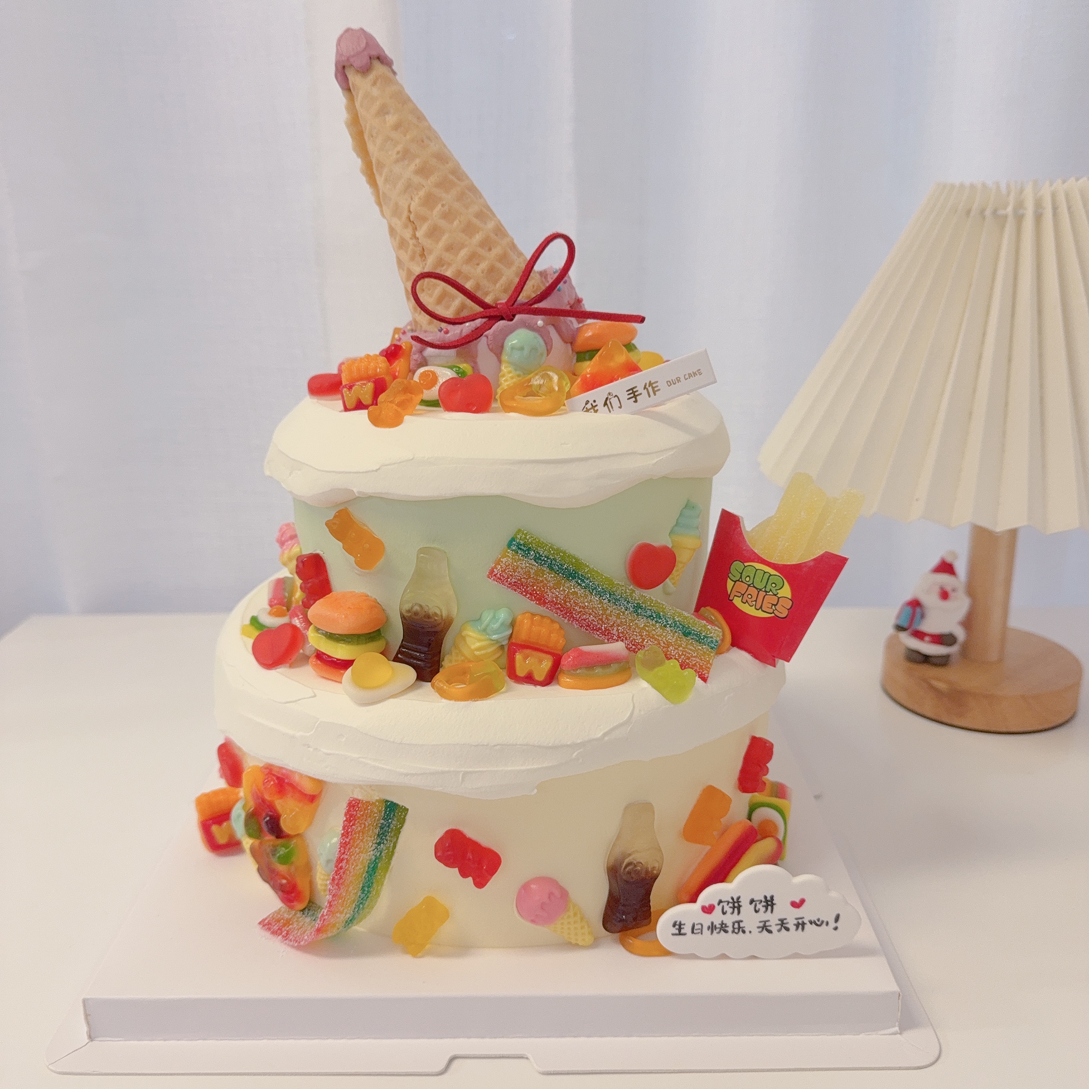 彩色软糖双层卡通蛋糕-低糖处理无添加