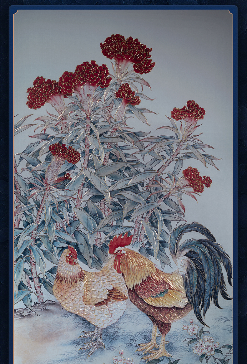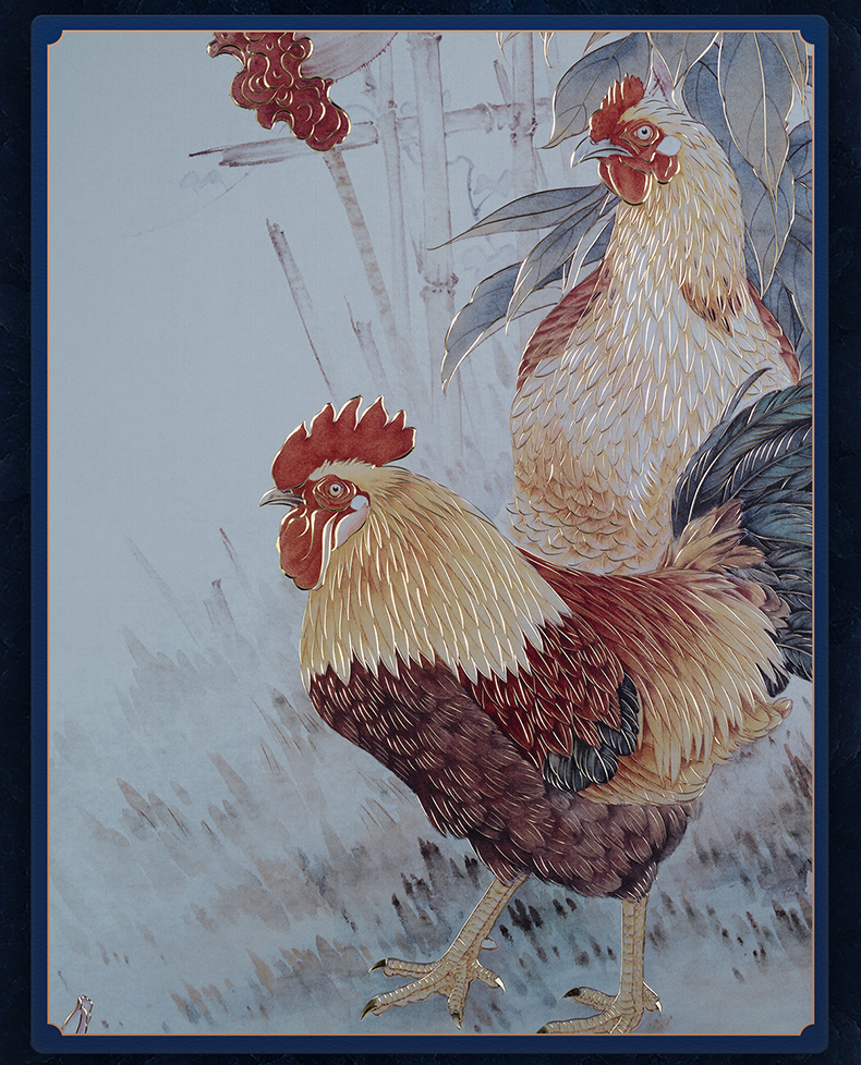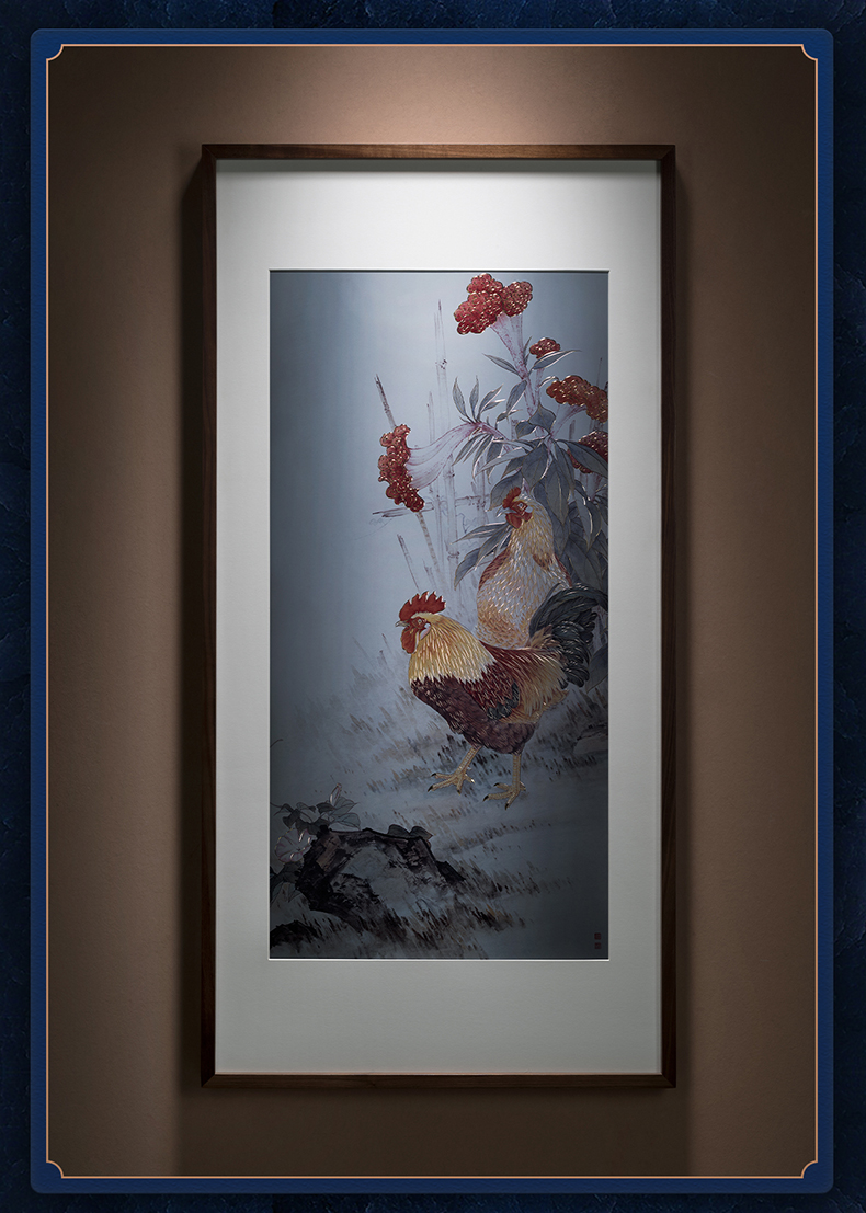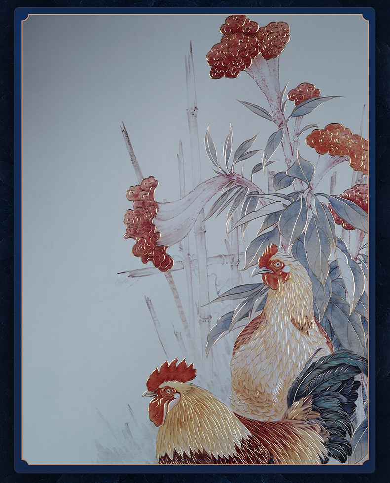 铜师傅 手工錾刻 铜雕画《高冠财福 红冠锦羽 满堂红》客厅玄关装饰画 高冠财福