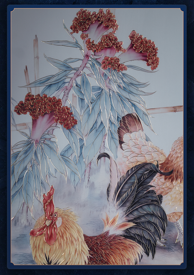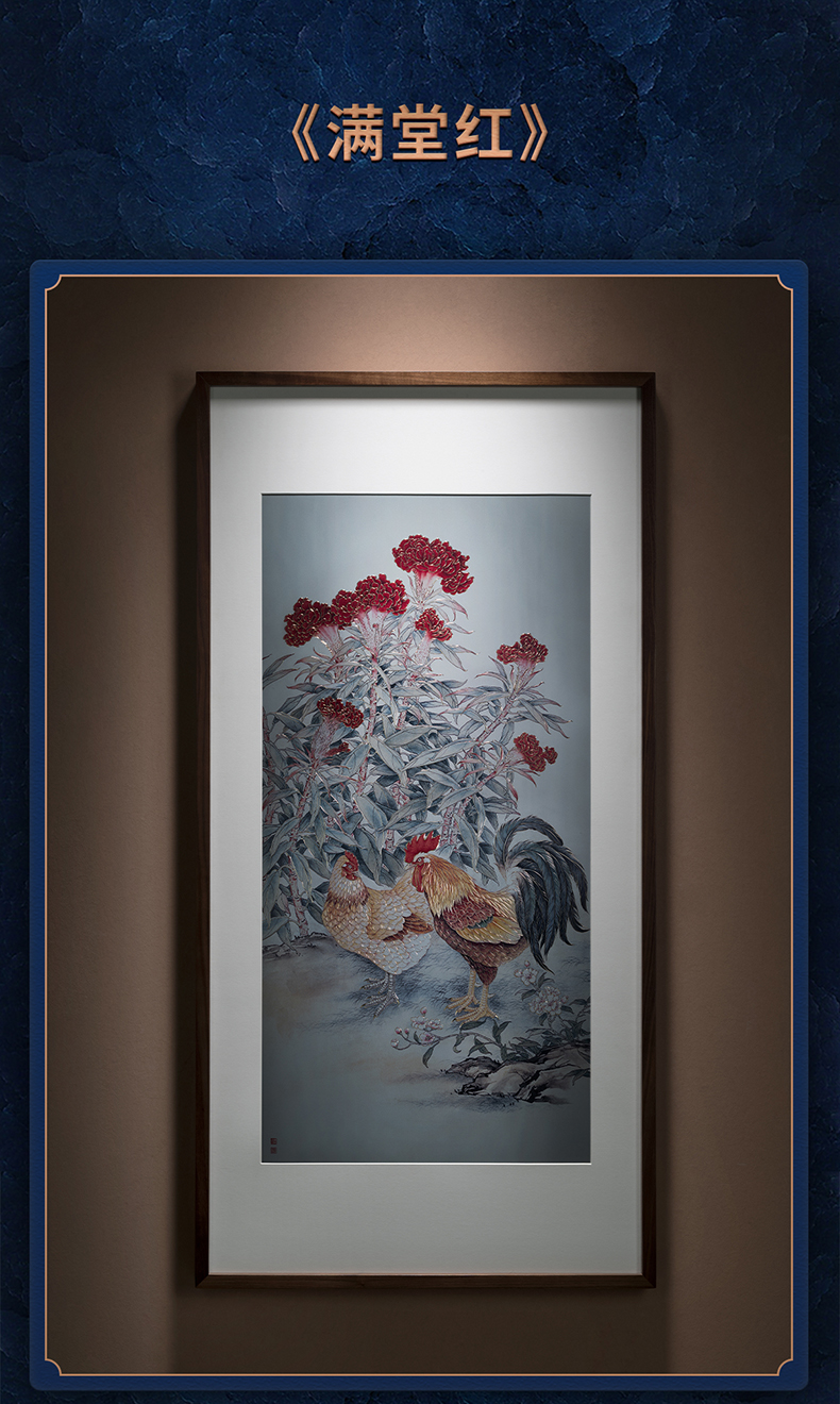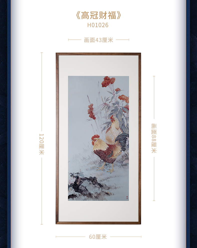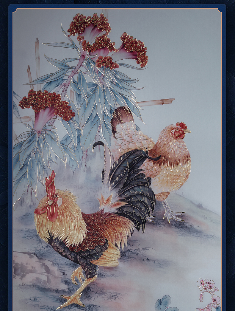 铜师傅 手工錾刻 铜雕画《高冠财福 红冠锦羽 满堂红》客厅玄关装饰画 高冠财福