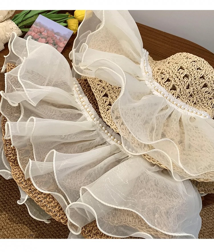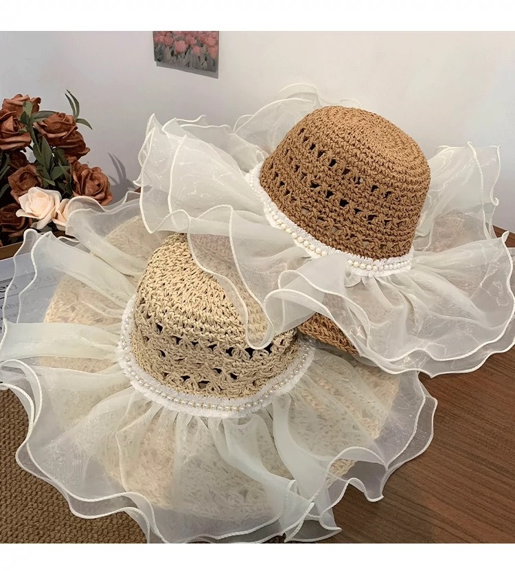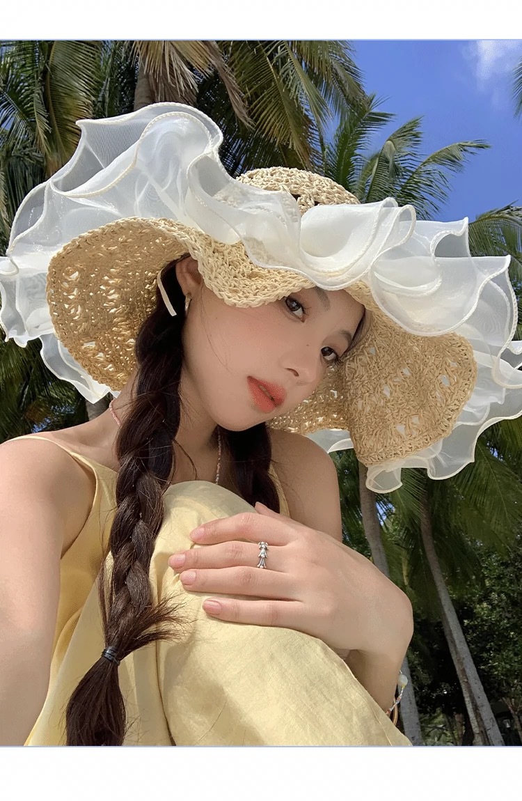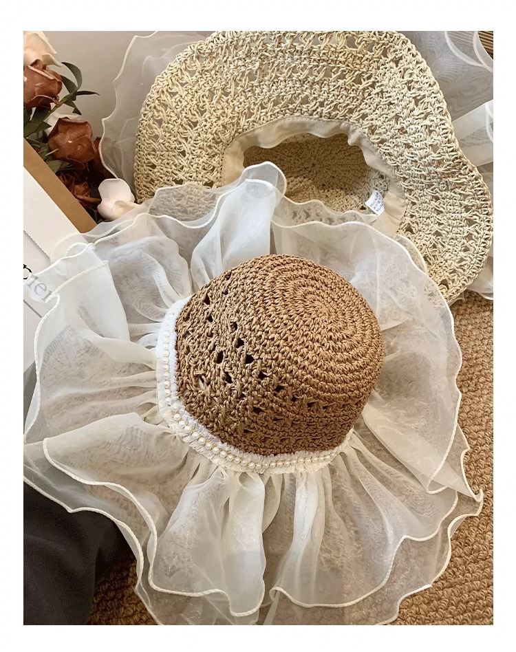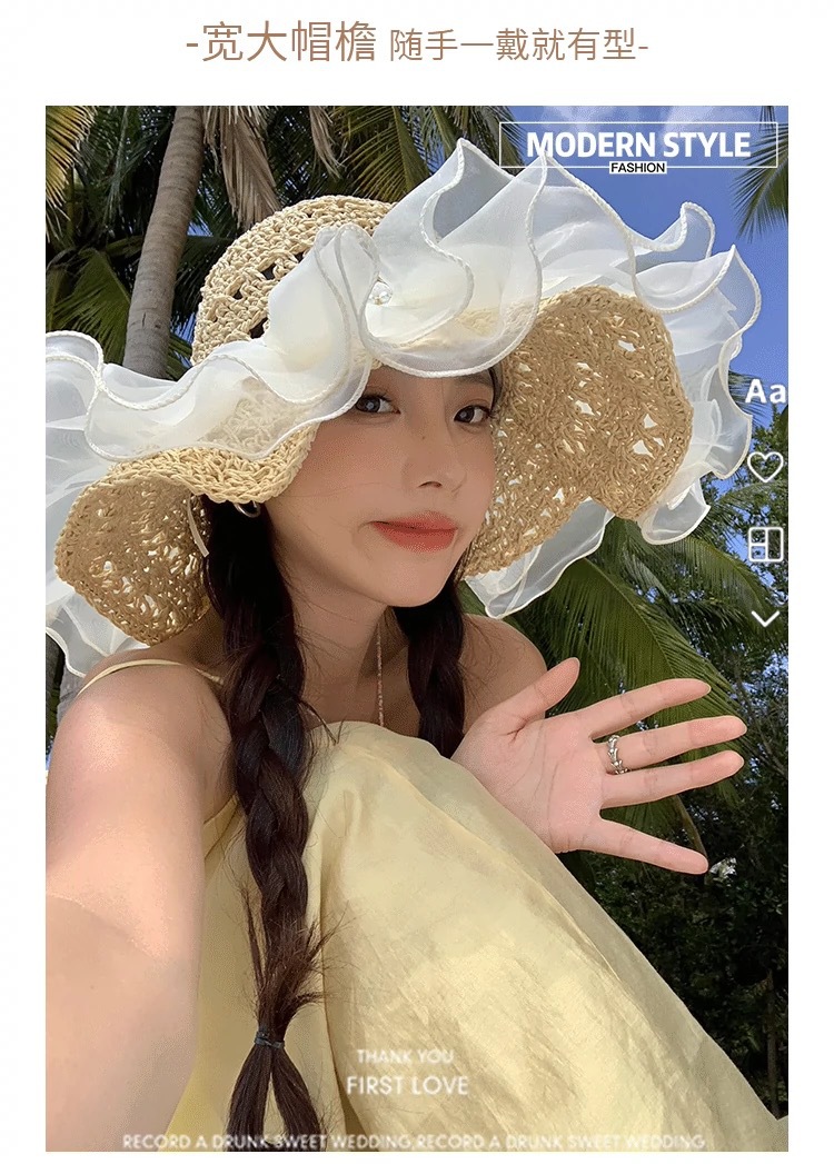蕾丝草编太阳帽子女大帽檐夏季透气草帽海边遮全脸遮阳沙滩帽子潮