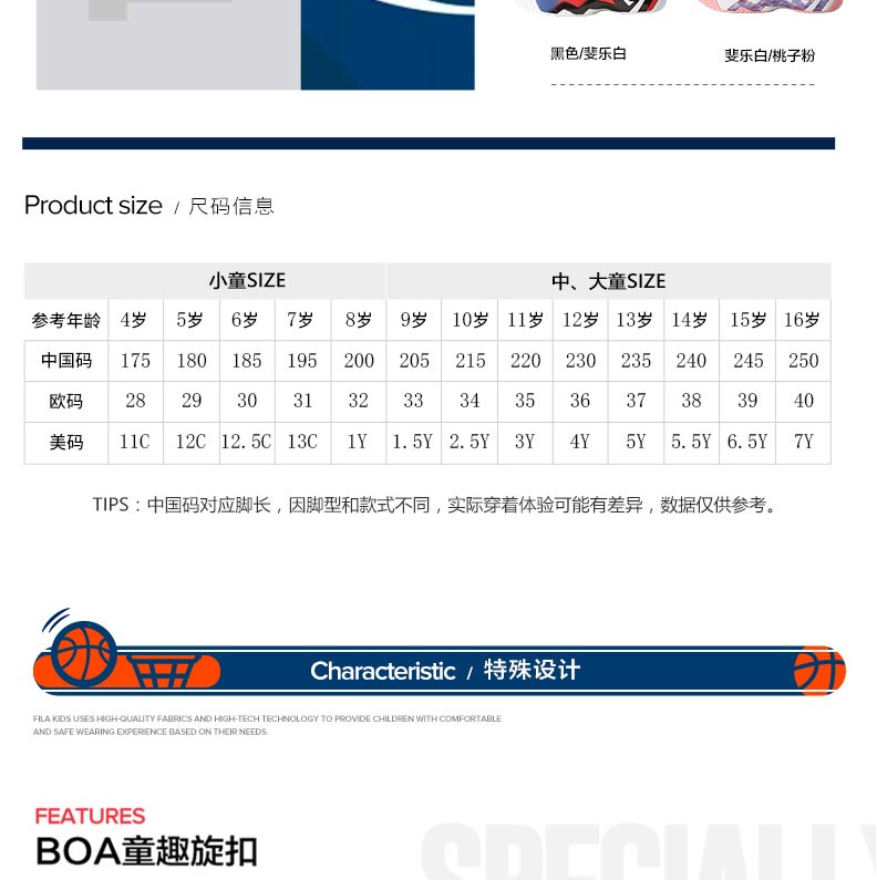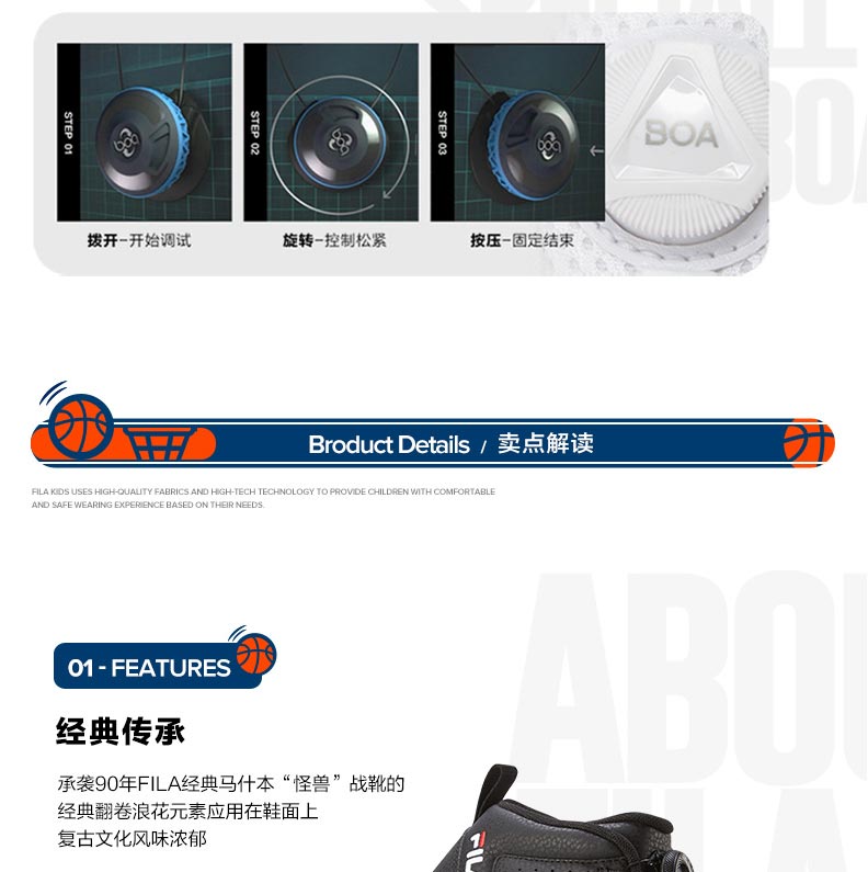 小斐乐儿童篮球鞋2022年春季新款男女大童BOA运动鞋子K15B211205F