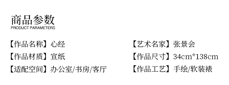 张景会《心经》34*138cm 诗词书法横幅作品 办公室/客厅/书房挂画