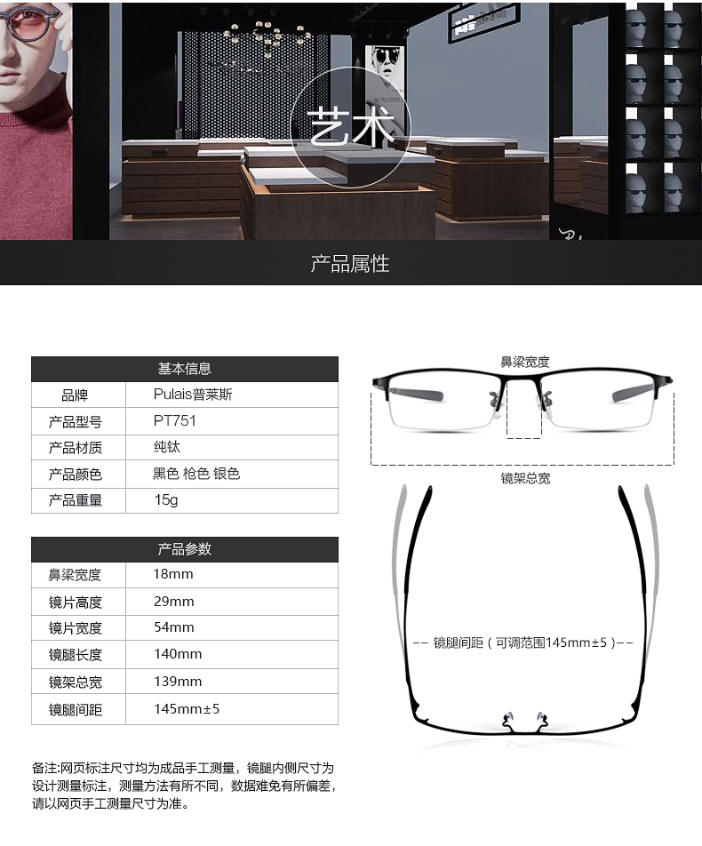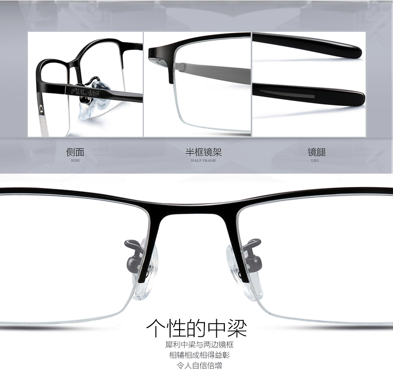 普莱斯PT751 纯钛 方框半框 商务休闲男士