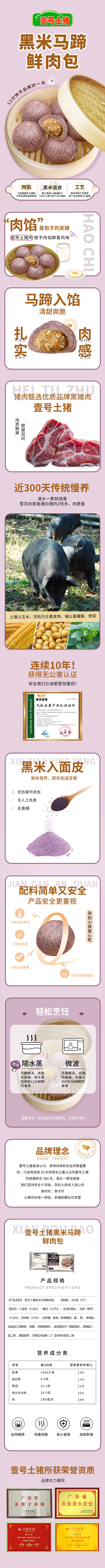 一号土猪 黑米马蹄鲜肉包390g/6只装