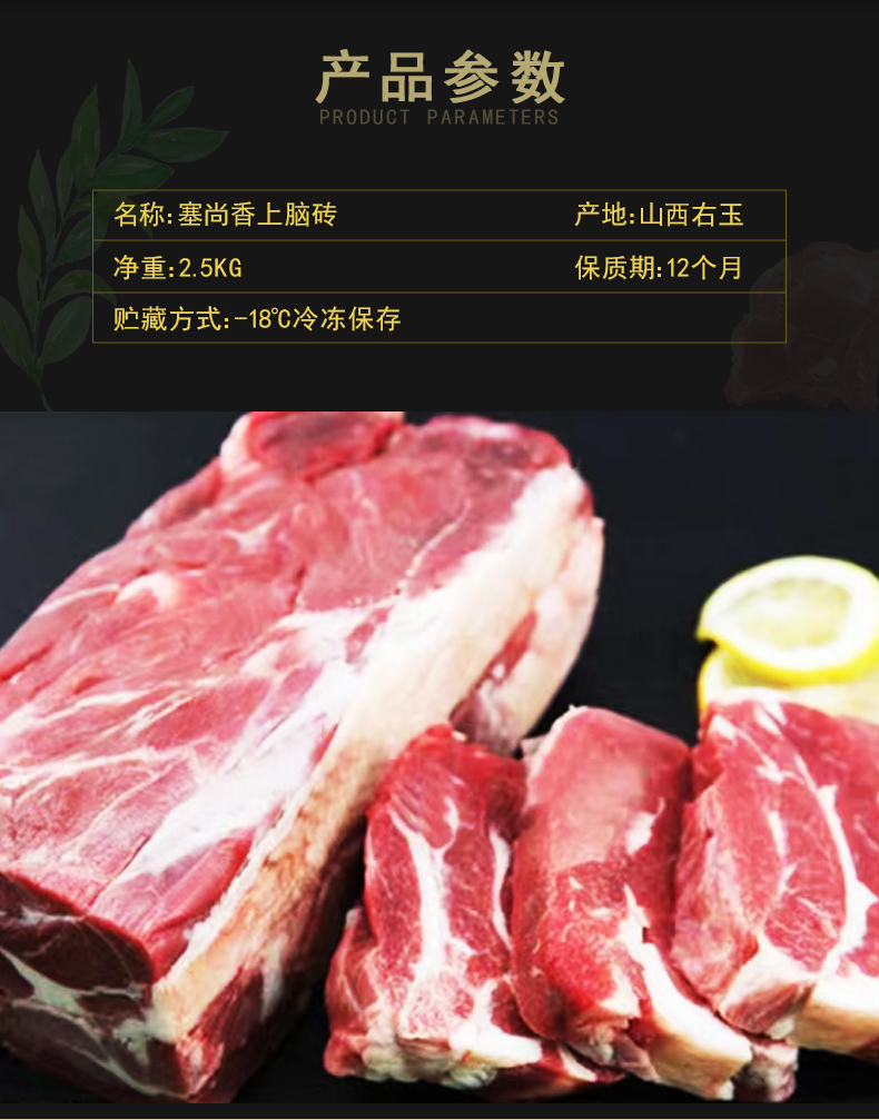 【塞尚香】右玉羊肉 上脑砖2.5kg涮肉火锅烧烤食材