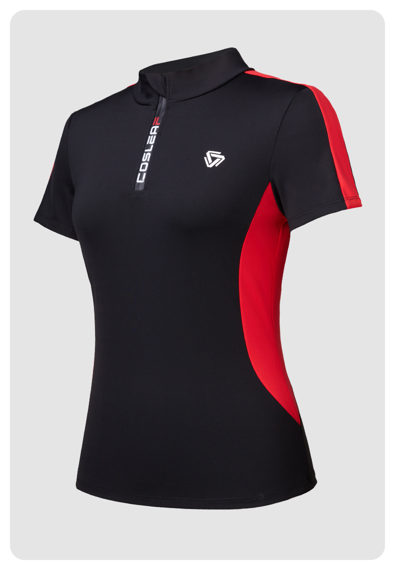 【2025上新】科里芙拼色半拉链短袖户外运动跑步健身T恤透气春夏女