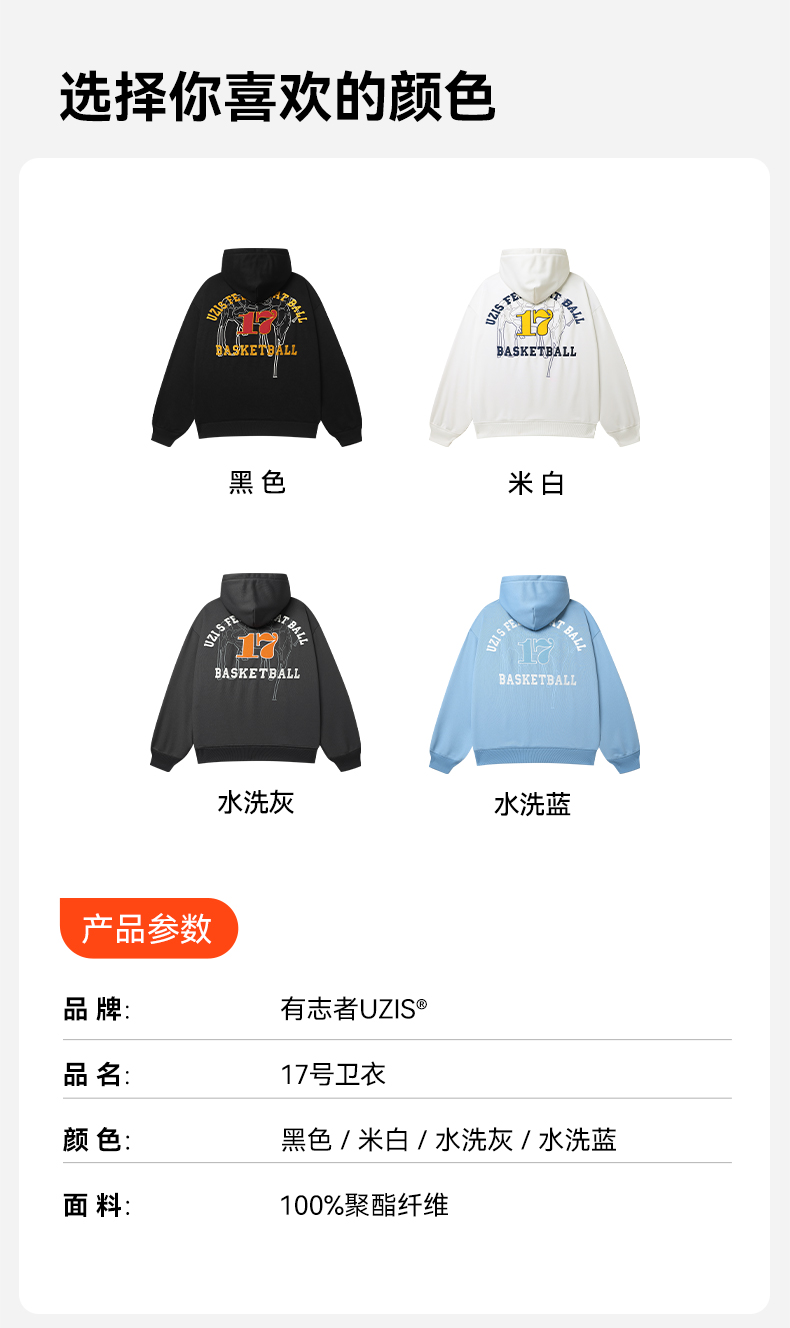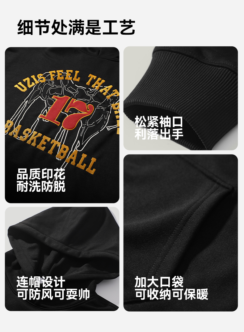 有志者UZIS 美式篮球运动卫衣男复古休闲有志青年连帽套头衫[17号