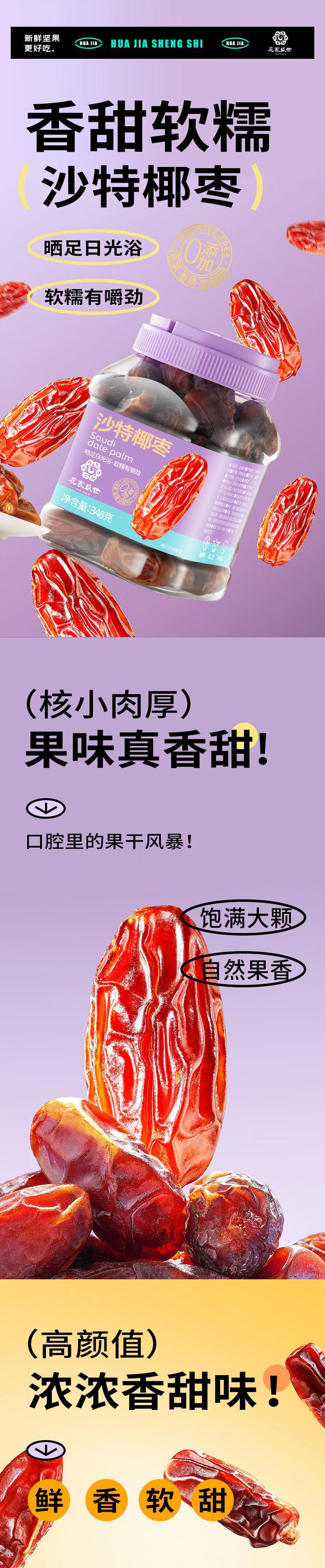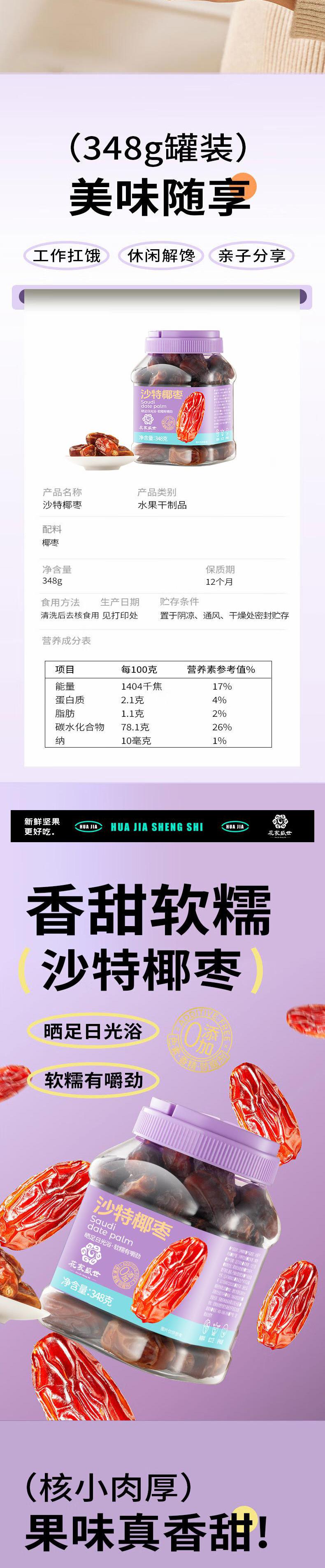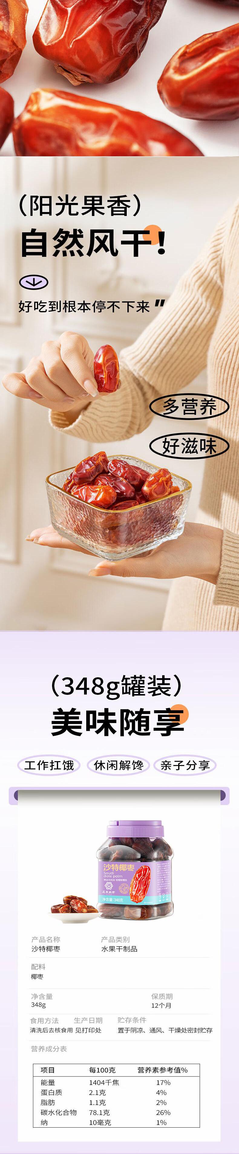 【自营】花家盛世 0添加沙特椰枣348g多巴胺罐装规格 HJSSJG017