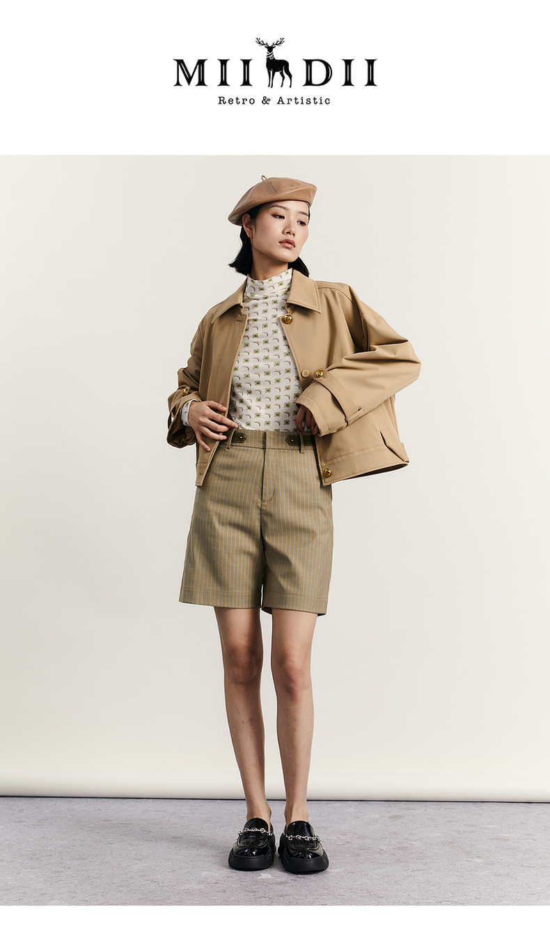 谜底短裤女2023秋季新款复古时尚百搭高腰绅士风直筒裤233MK1056