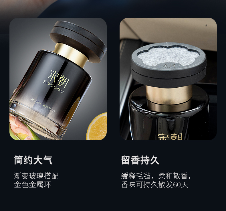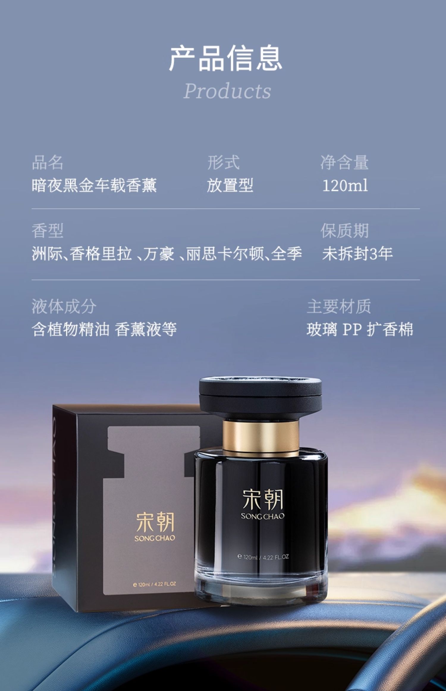 宋朝暗夜黑金车载香薰香格里拉香新款高端汽车香水高级男士摆件宋朝暗夜黑金车载香薰120ml
