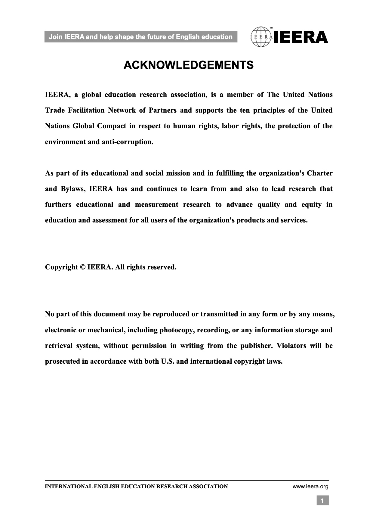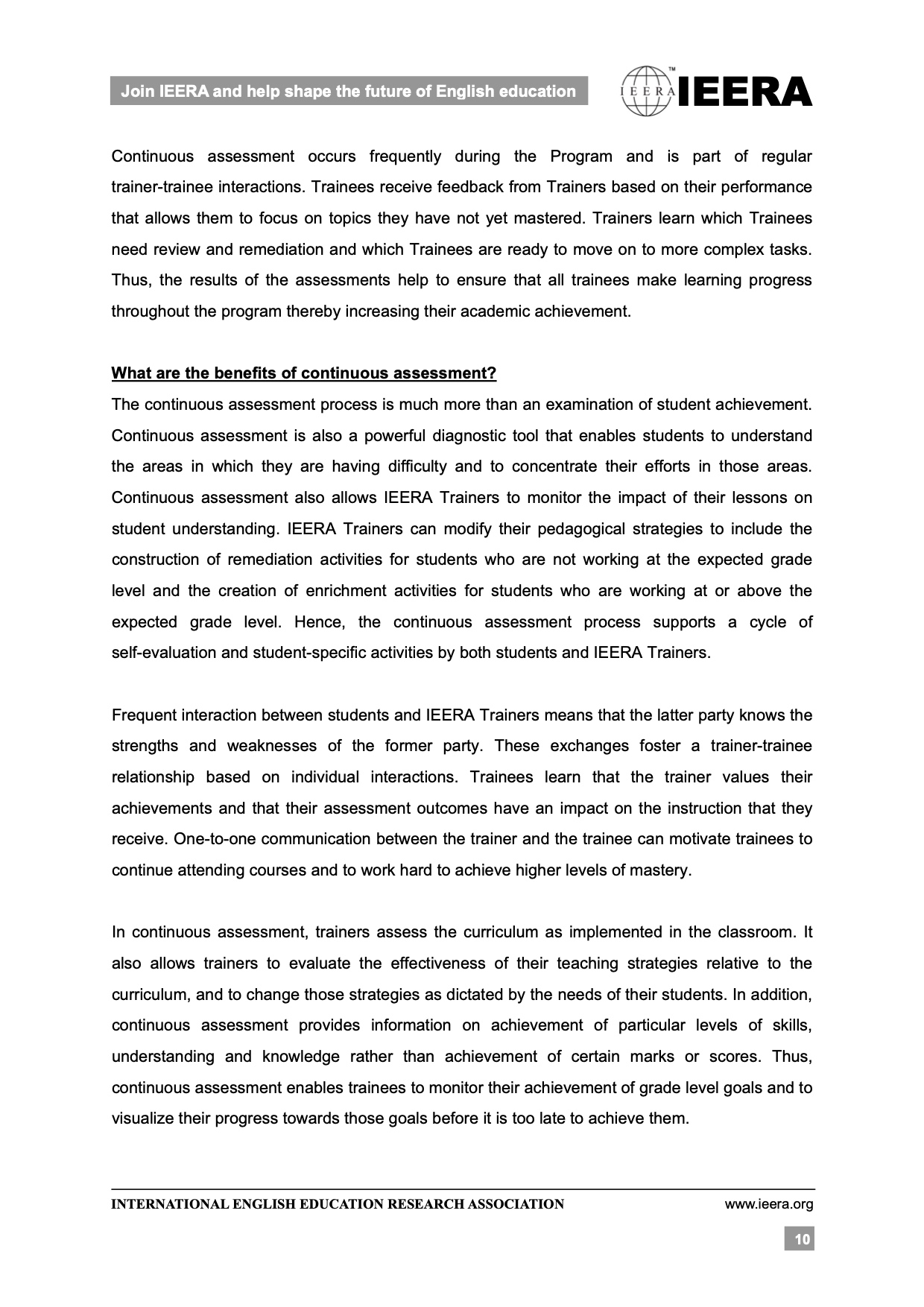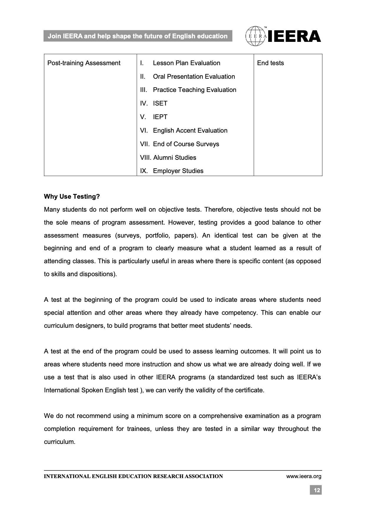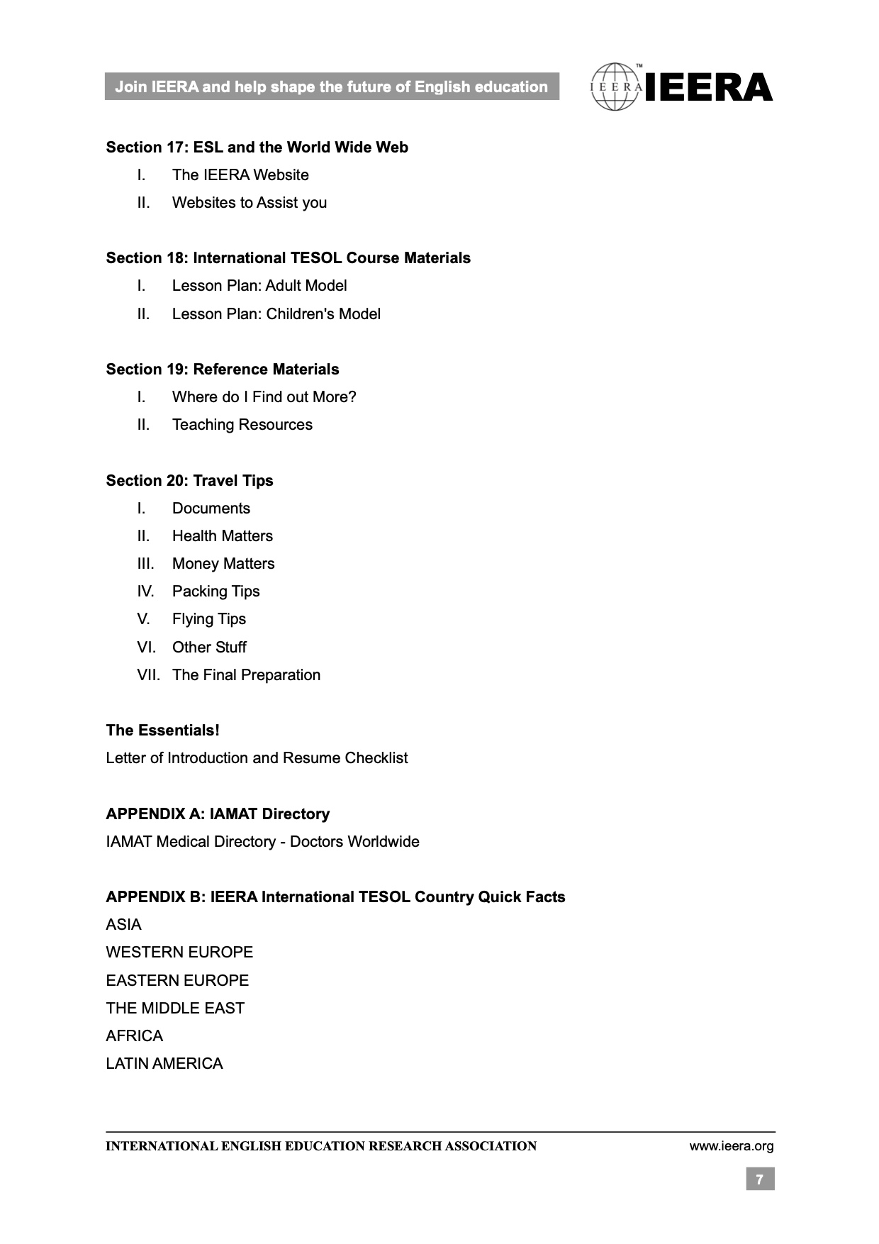 作为 TESOL® 和 TEFL® 国际英语教育质量标准的缔造者和所有者,国际英语教育研究协会(IEERA)是联合国和世界银行领导下的全球交通与贸易合作组织(GFP)成员,超过2千万注册会员覆盖全球150多个国家,多年来,IEERA国际英语认证系统已在全球150多个国家被广泛使用并已经成为全球范围内评估英语能力的权威标准。IEERA国际证书也因此获得“全球求职通行证”的美誉。