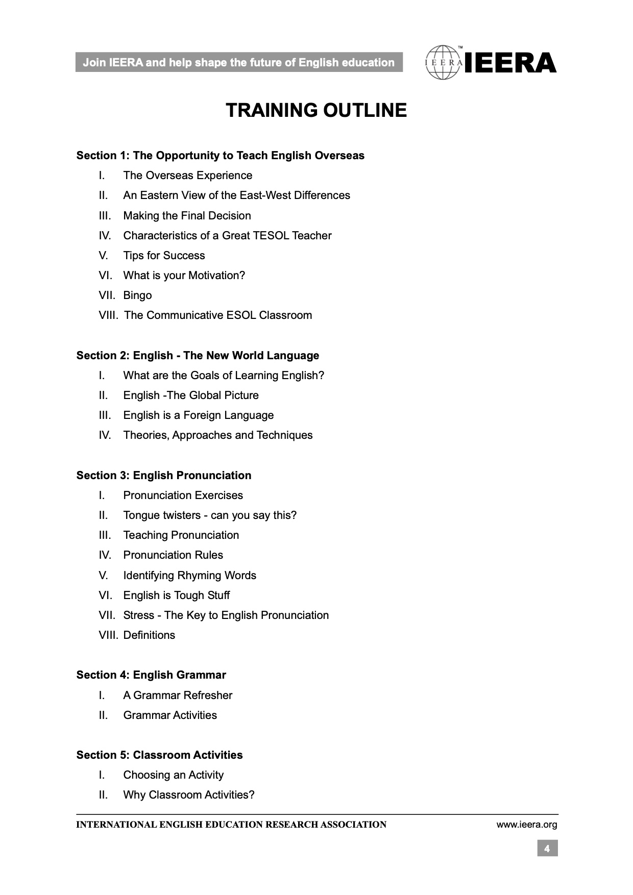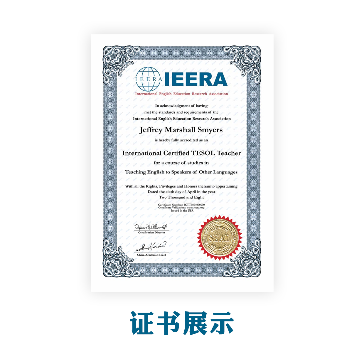 国际英语教育研究协会(IEERA)是国际英语教育教学质量认证领域知名品牌 TESOL® 和 TEFL® 的认证标准及注册商标的合法拥有者。