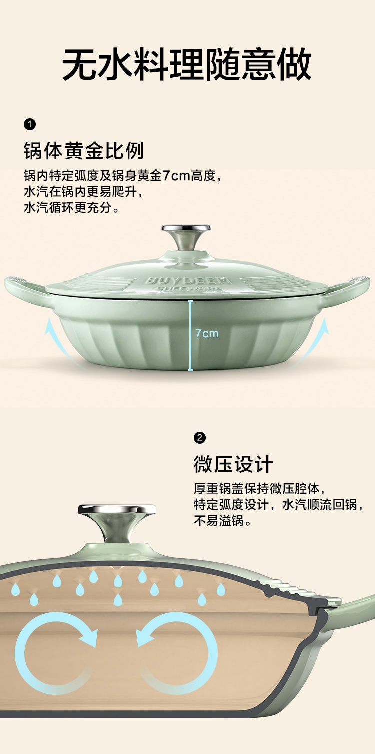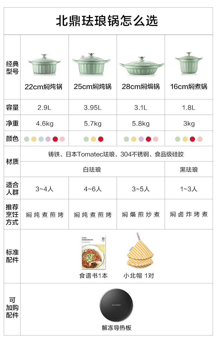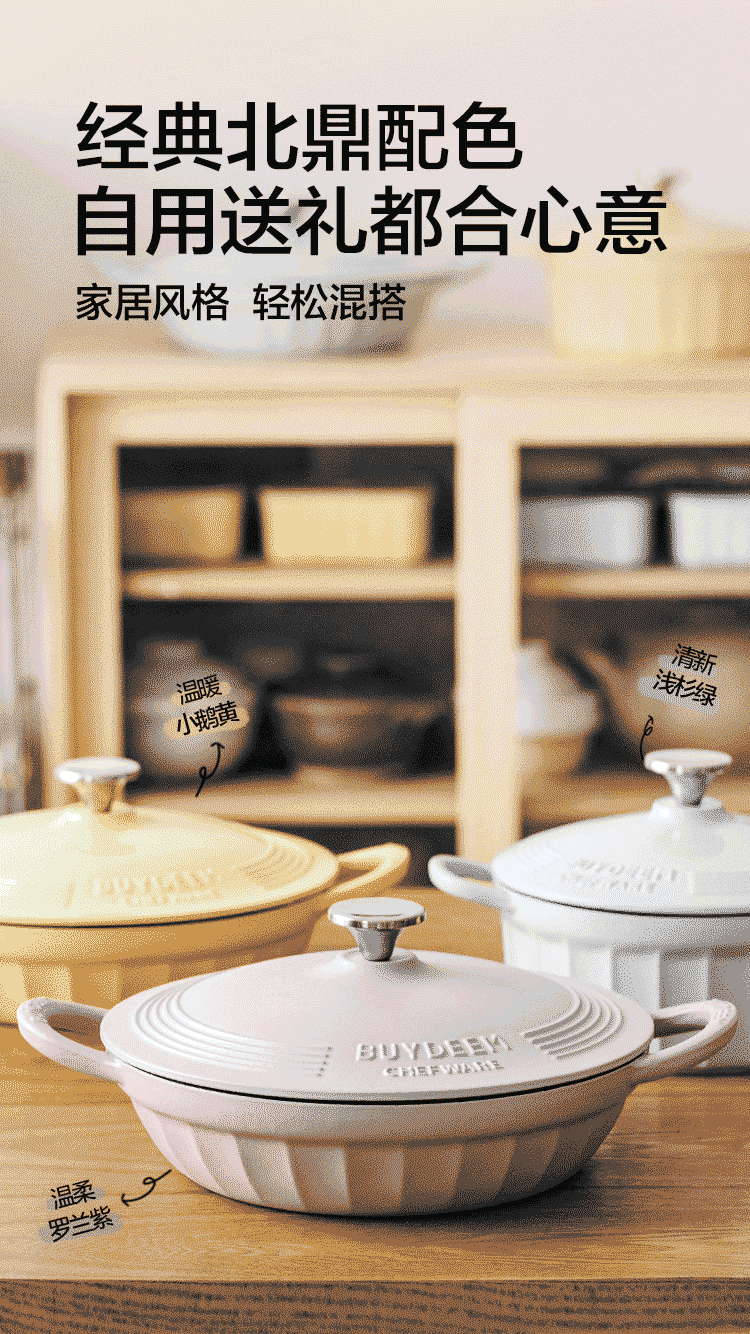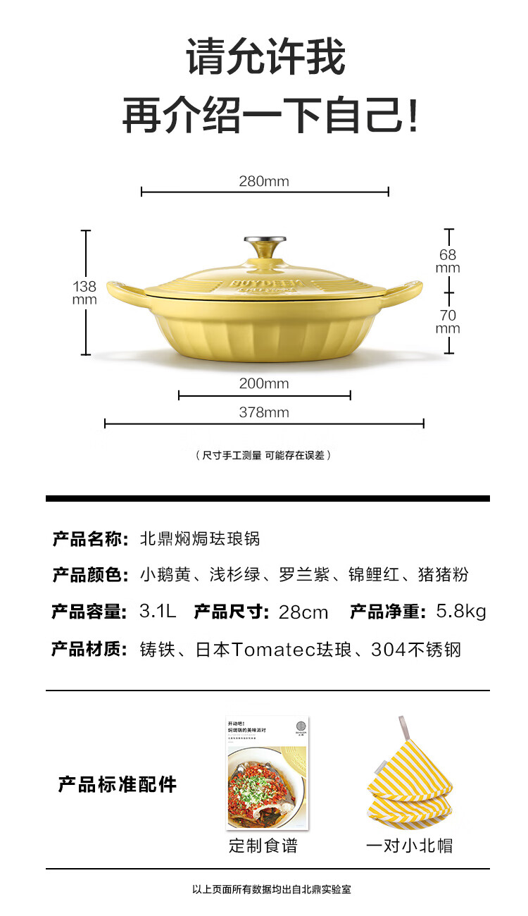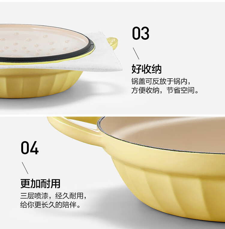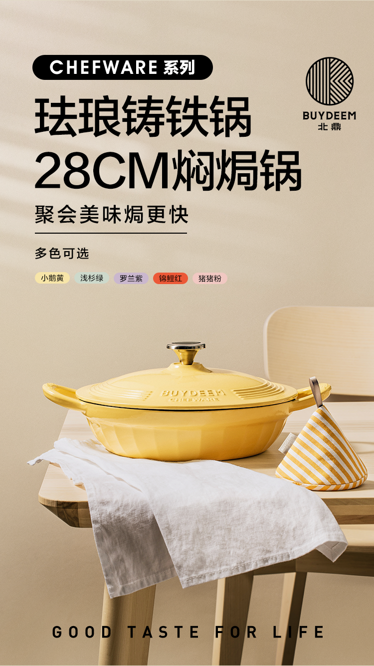 【专柜-北鼎】北鼎珐琅锅铸铁锅焖焗锅海鲜锅28cm家用多功能锅焖炖炒锅砂锅