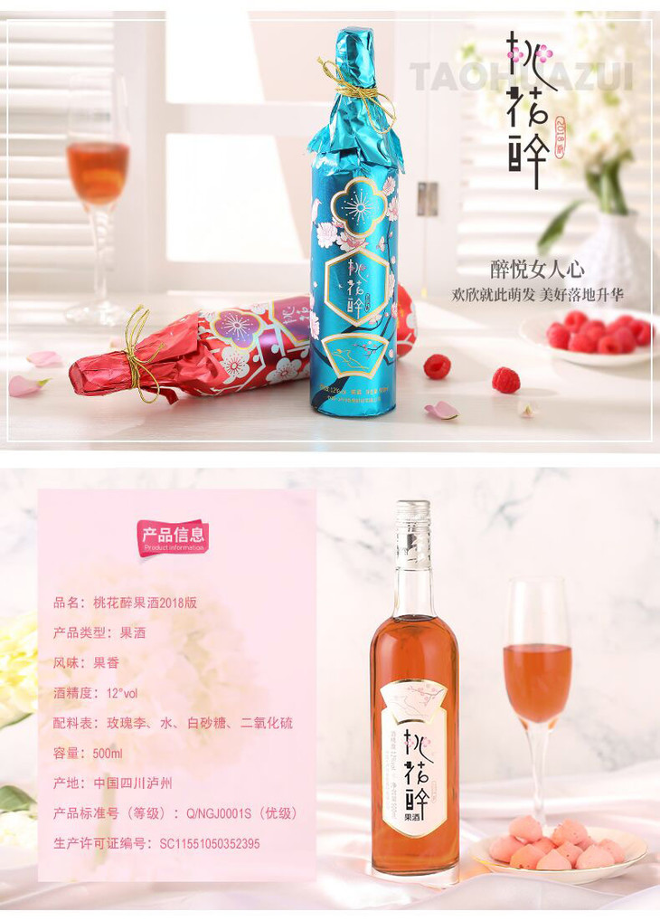 【积分商城-形象店会员专享】12度 桃花醉 果酒 500ml