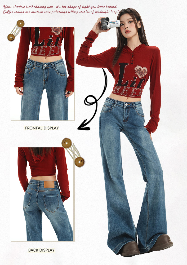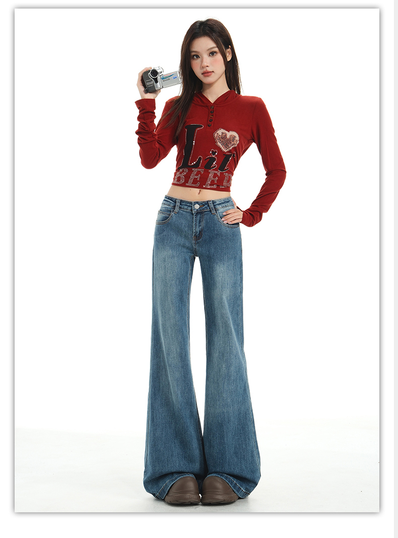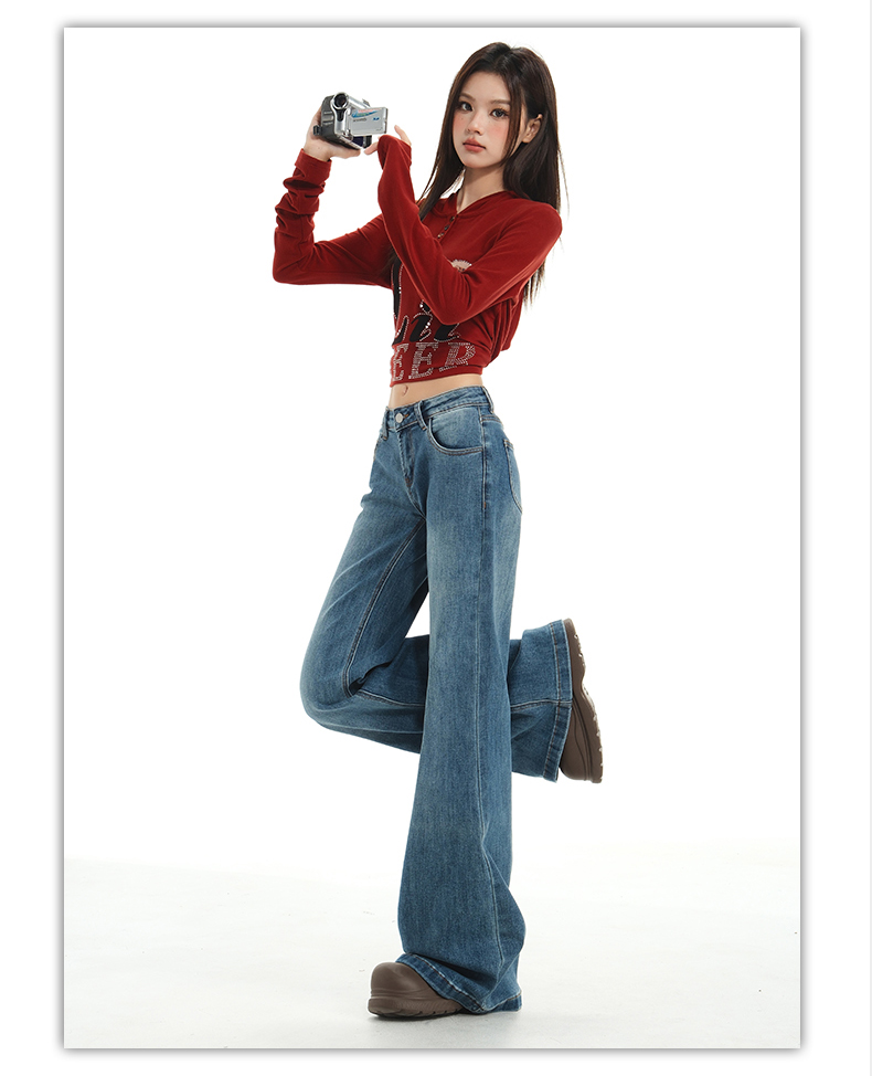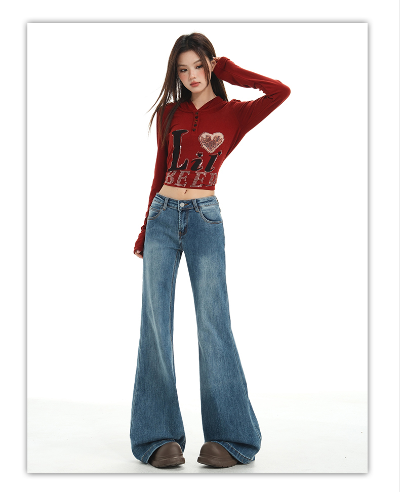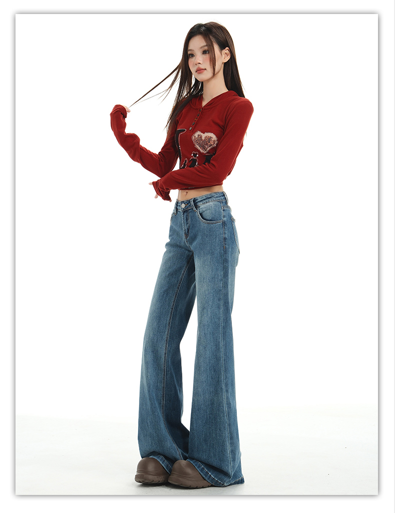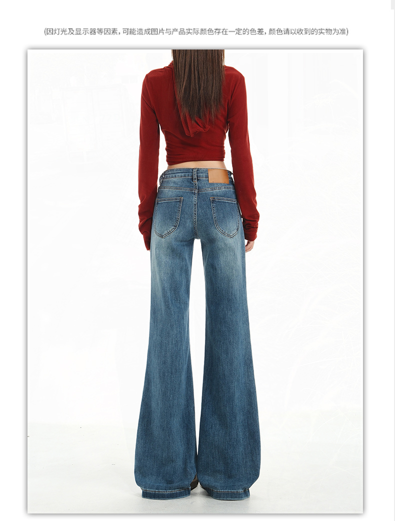 【加绒加厚】罗蒙秋冬款牛仔裤女士加绒保暖高腰微喇宽松百搭长裤子