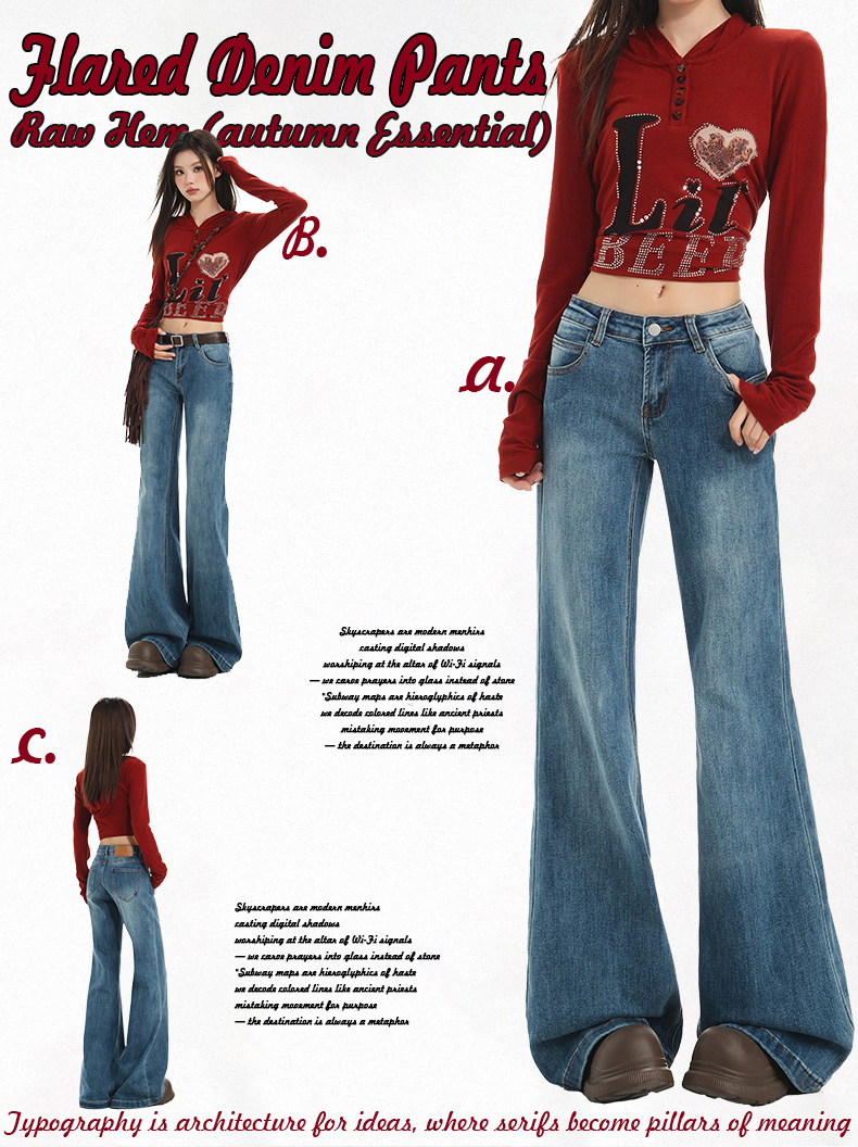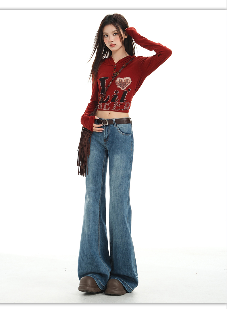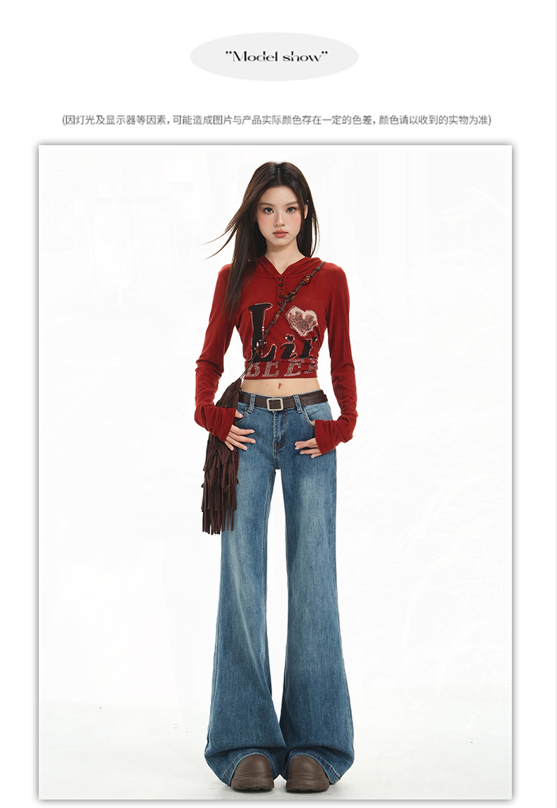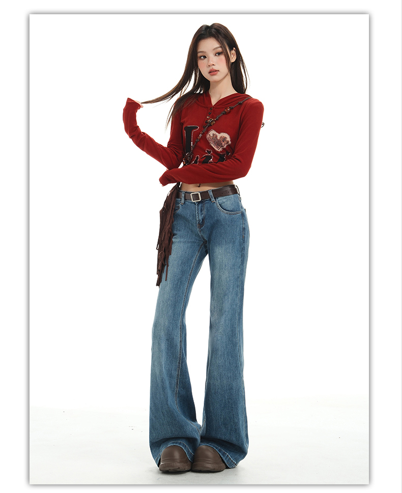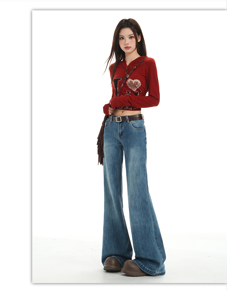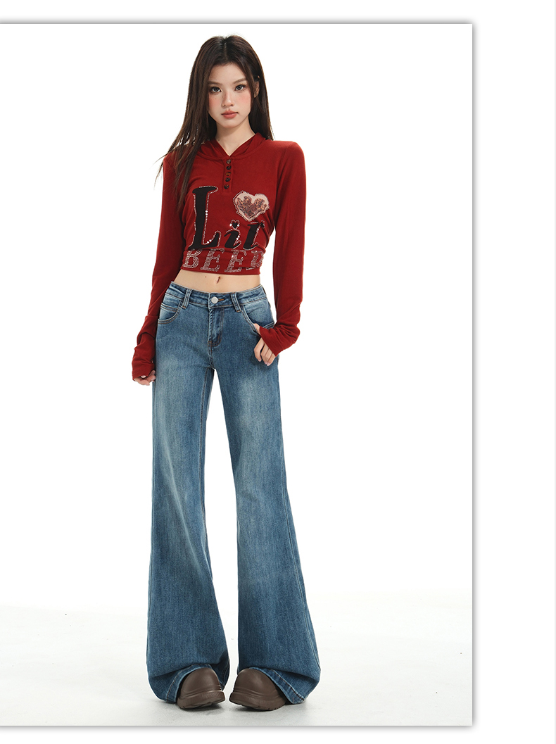 【加绒加厚】罗蒙秋冬款牛仔裤女士加绒保暖高腰微喇宽松百搭长裤子