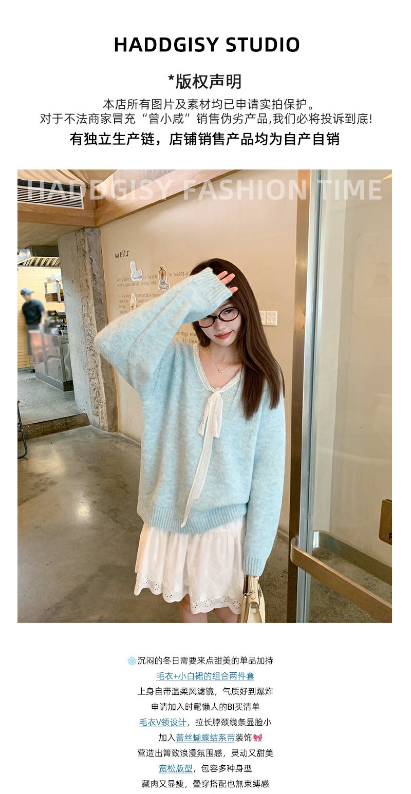 <曾小咸推荐>淡蓝色V领毛衣 日常179.99/件 立减90 秒杀89.99/件!!