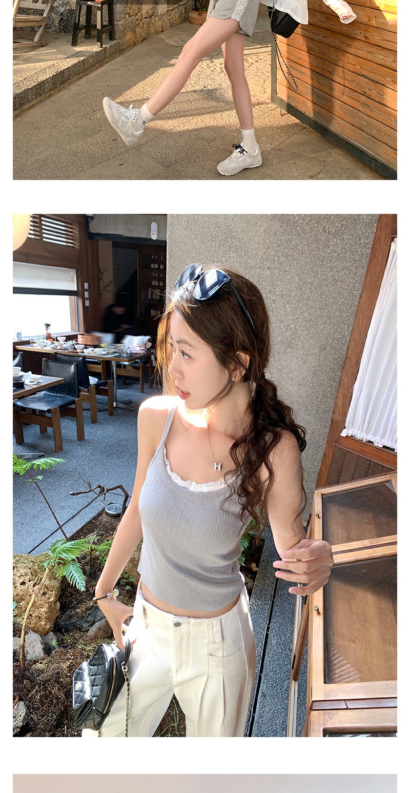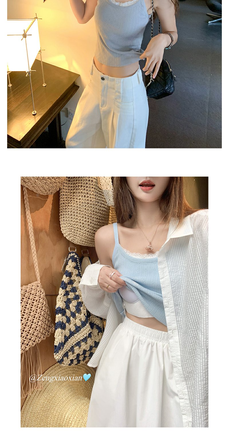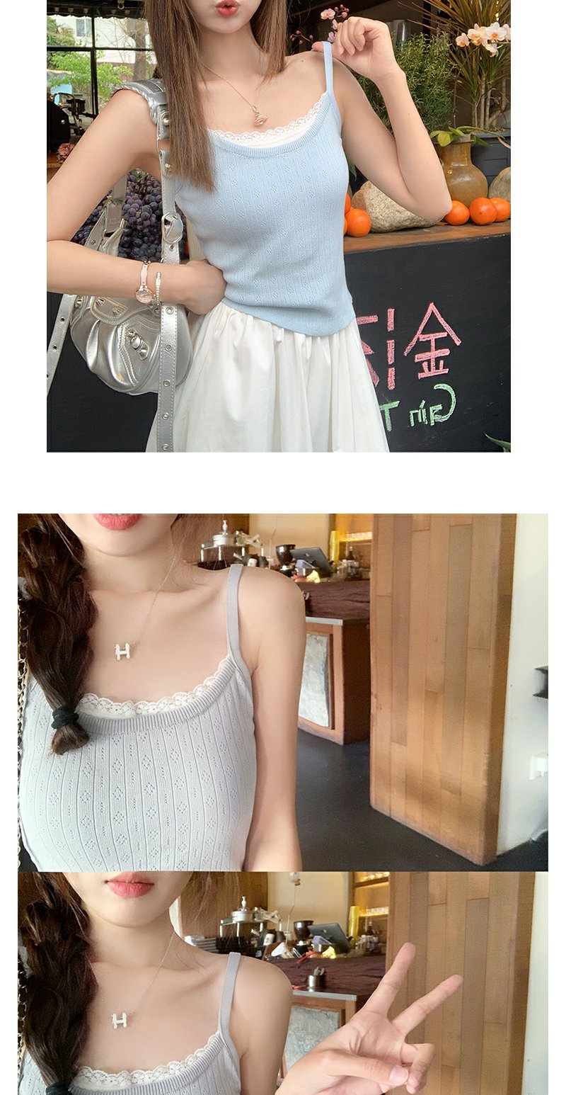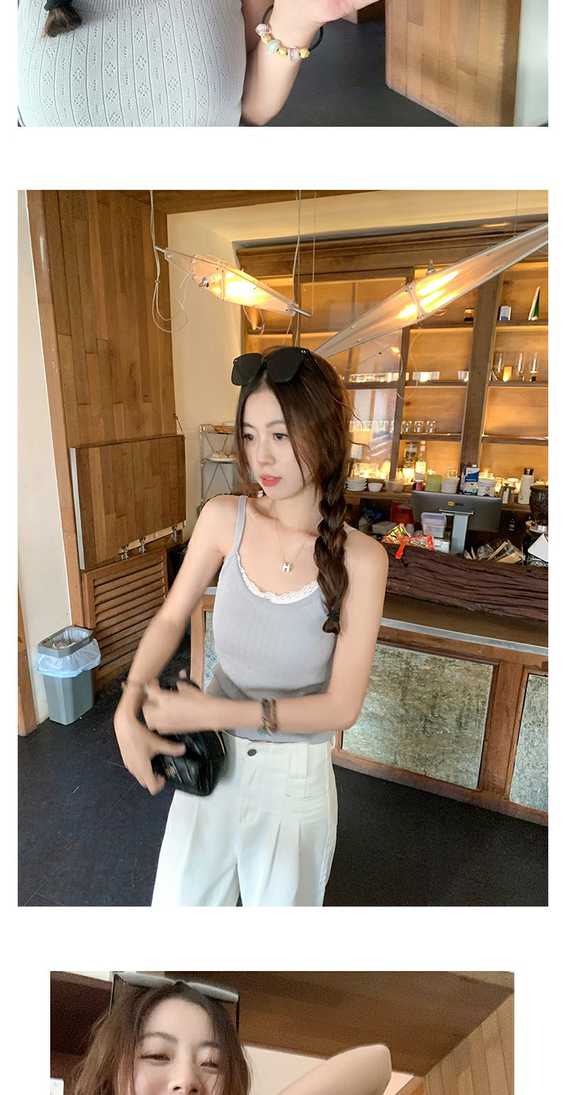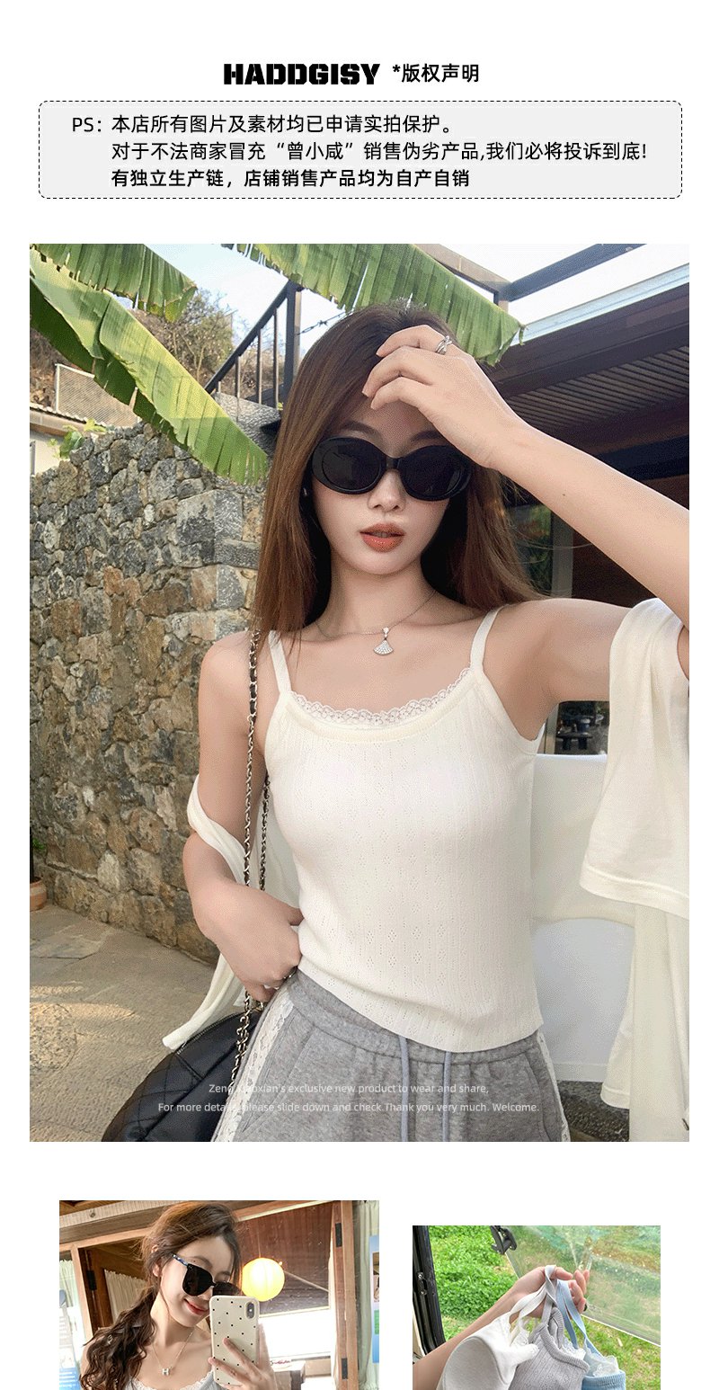 <曾小咸推荐>带胸垫蕾丝内搭假两件针织吊带背心