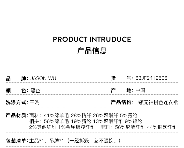 【JASON WU】秋冬新款新中式羊毛针织拼皮撞色连衣裙