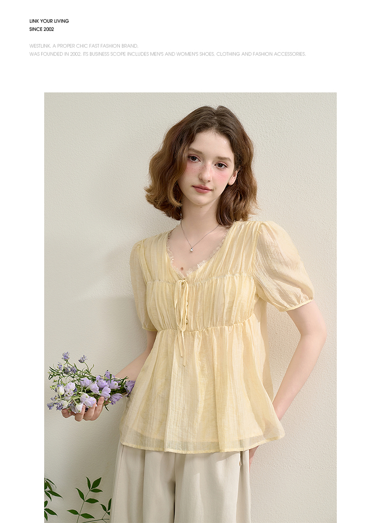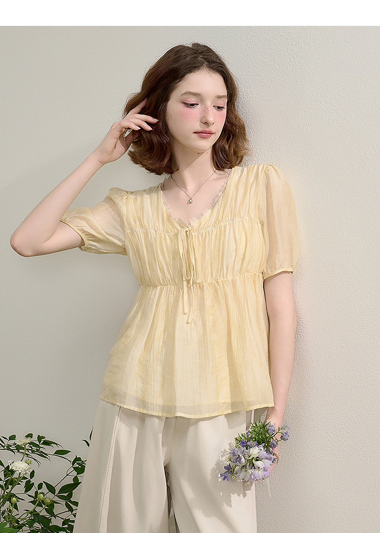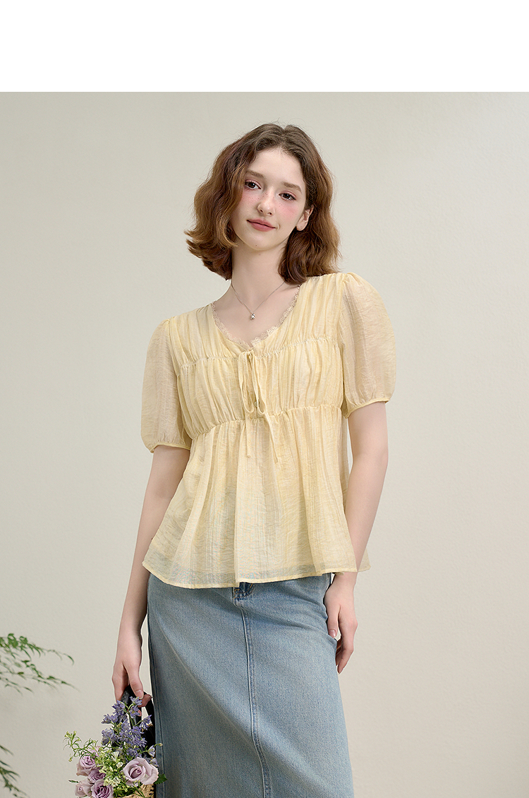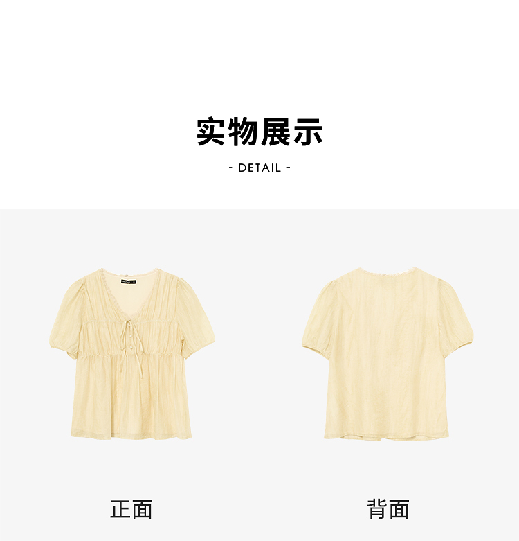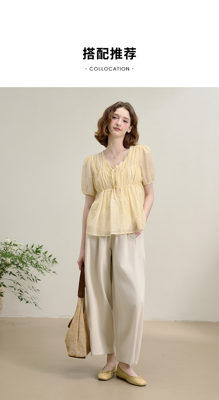 【限时秒杀】【天丝】温柔缩褶波纹肌理感衬衫女娃娃款V领衬衣V0051042